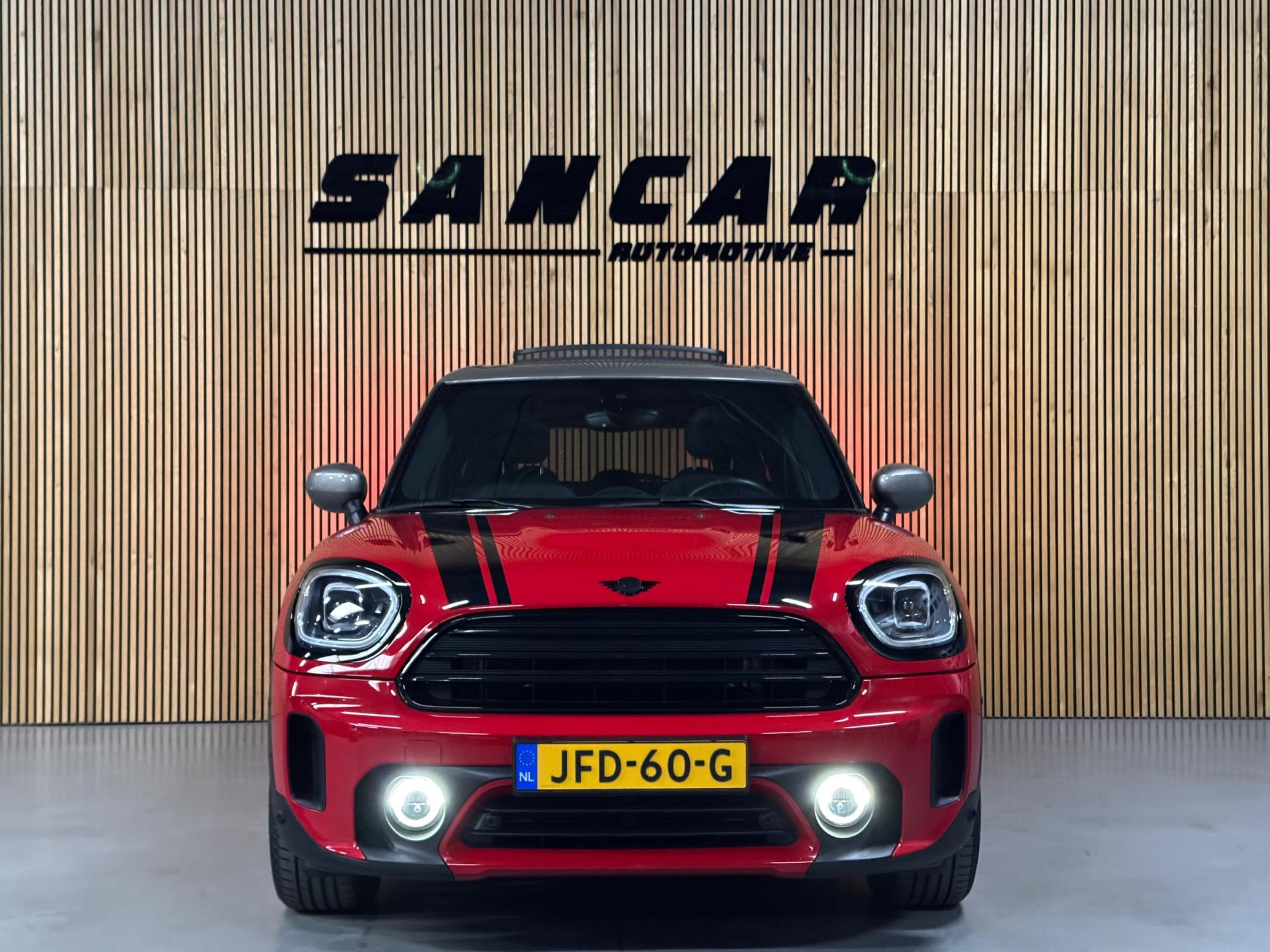 DEZE BLITSENDE MINI COUNTRYMAN YOURS UIT MAART 2023 MET SLECHTS 38.989 KM OP DE TELLER EN 136 PK, EEN SPORTIEVE EYECATCHER IN CHILI RED MET GLANZENDE PIANO BLACK DETAILS, VOORZIEN VAN ONDER ANDERE: