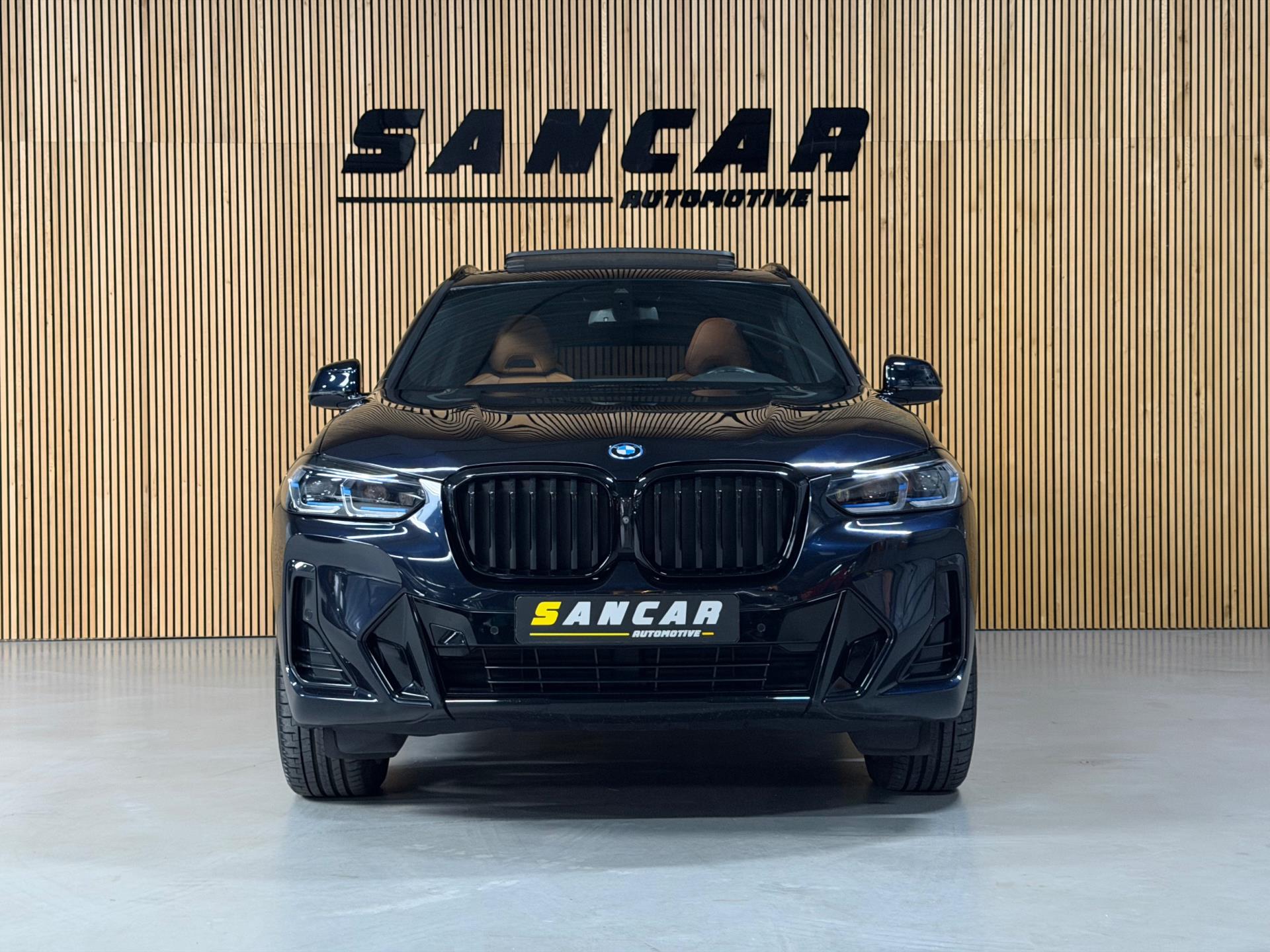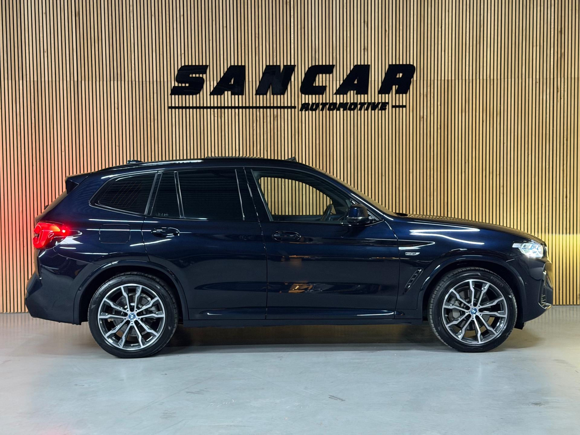 Prachtige BMW X3 30e M Sport Plug-in Hybride met maar liefst 292 pk, uitgevoerd in de stijlvolle kleur Carbon zwart met sportieve zwarte accenten SHADOW LINE. Deze luxe en krachtige SUV heeft slechts 91.400 km op de teller en is voorzien van onder andere: