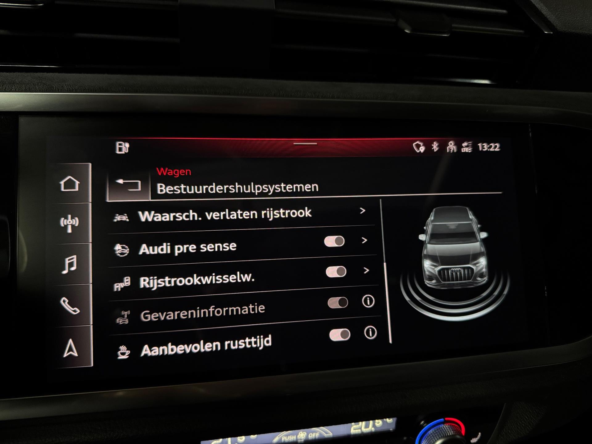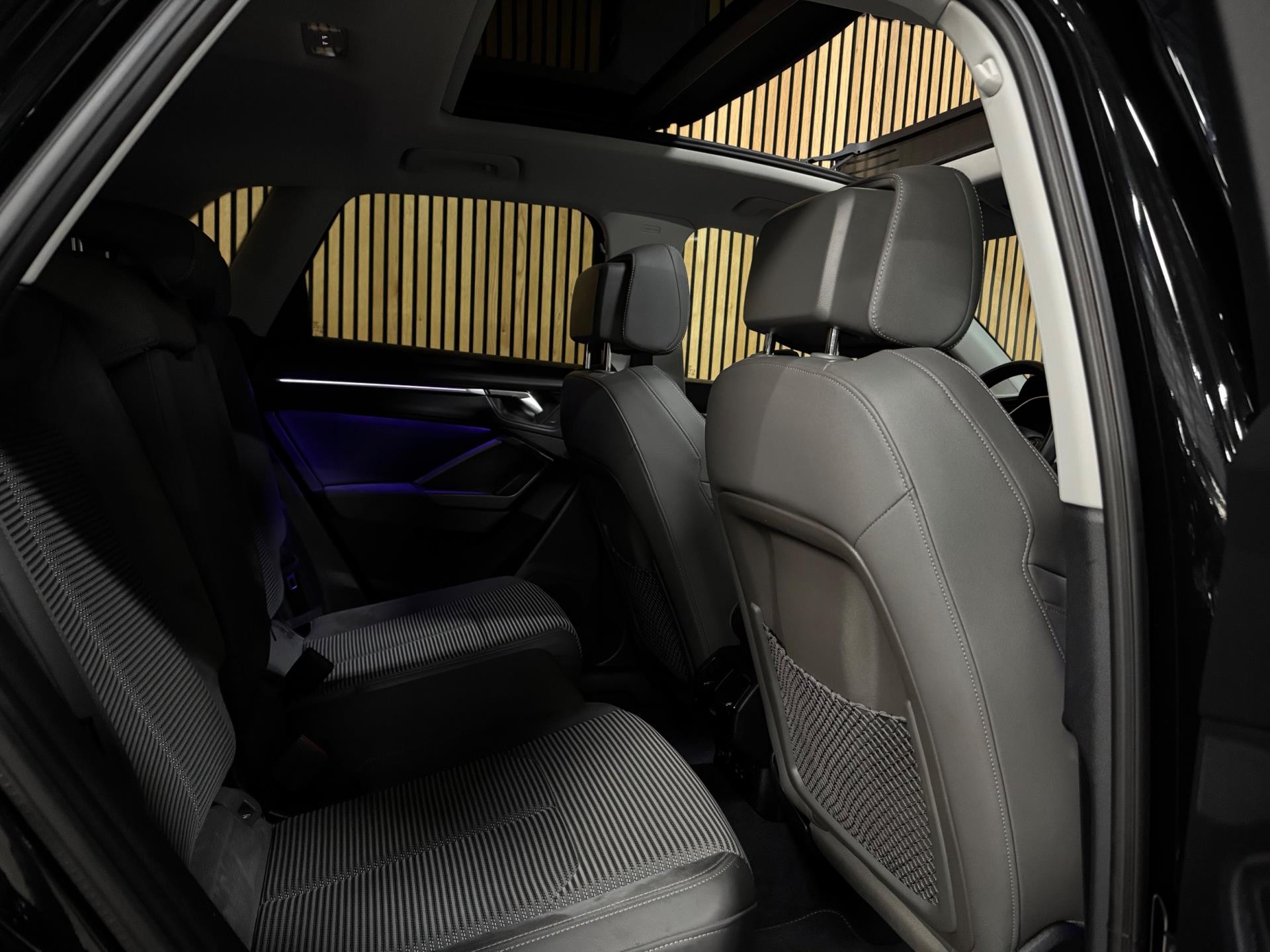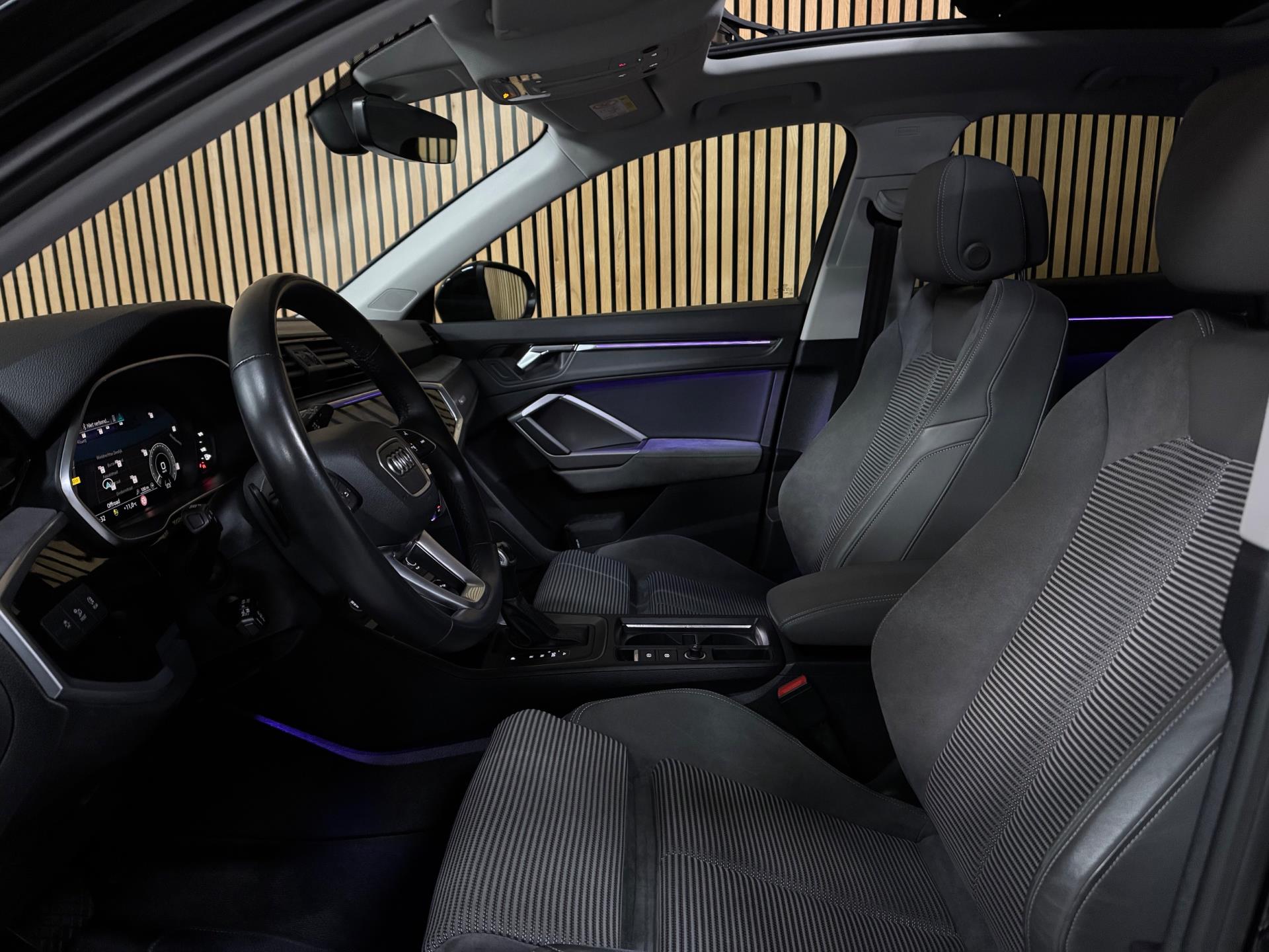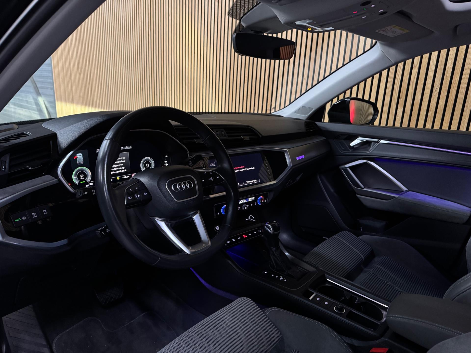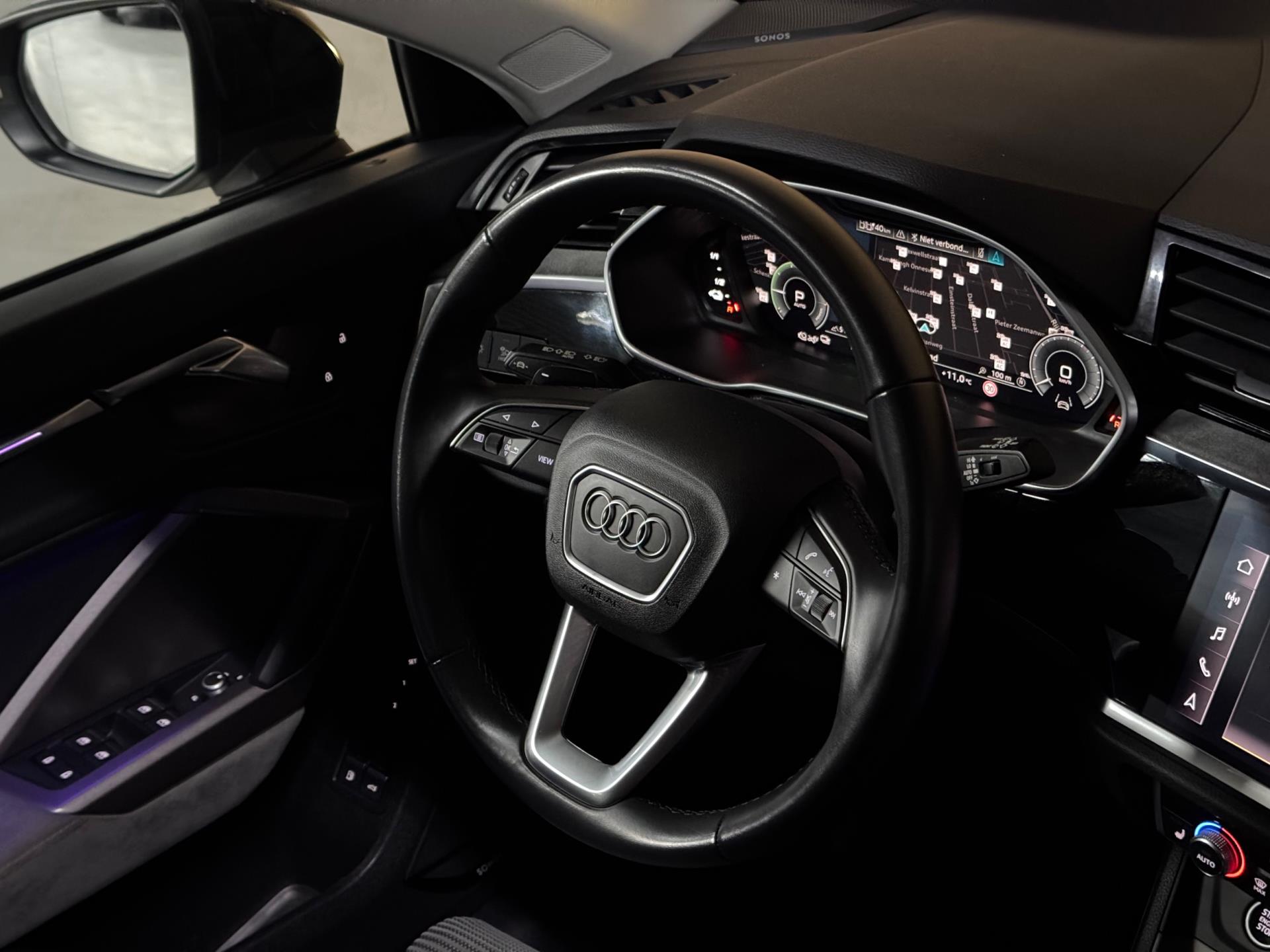 De Audi Q3 45 TFSI e Black Edition combineert een premium rijervaring met de efficiëntie van plug-in hybride technologie. Met 245 pk, een rijke uitrusting en een sportieve uitstraling biedt deze SUV alles wat u mag verwachten van het hoogste niveau in zijn klasse. Deze prachtige auto is onder andere uitgevoerd met panoramadak, Virtual Cockpit, Sonos soundsysteem, navigatie, Apple CarPlay / Android Auto, DAB-radio, elektrische zetels met memory, stoelverwarming vóór, automatische 2-zone climate control, 360° camera, frontcamera, parkeersensoren vóór en achter, LED-koplampen, LED-achterlichten, grootlichtassistent, inklapbare trekhaak, elektrisch bedienbare achterklep, Audi Drive Select, cruise control, dodehoekdetectie, rijassistentiesystemen zoals rijstrookwisselassistent en rijbaanassistent (Side Assist en Lane Assist), Hold Assist, licht- en regensensor, akoestisch glas, privacybeglazing, achterbank met neerklapbare en verschuifbare leuning en middenarmsteun, elektrisch verstelbare, verwarmbare en inklapbare buitenspiegels met automatisch dimmen en stoeprandfunctie, ambientverlichting, decoraccenten in het dashboard in glasoptiek zwart, multifunctioneel stuurwiel met schakelfunctie, Audi Connect, diefstalalarmsysteem met interieurbeveiliging en sleepbeveiliging, elektrisch bedienbaar kinderslot, verlichte instaplijsten met aluminiuminzetstuk, dakrails, koplampsproeiers, metallic lak, 19 inch lichtmetalen velgen en USB-interface vóór en achter.