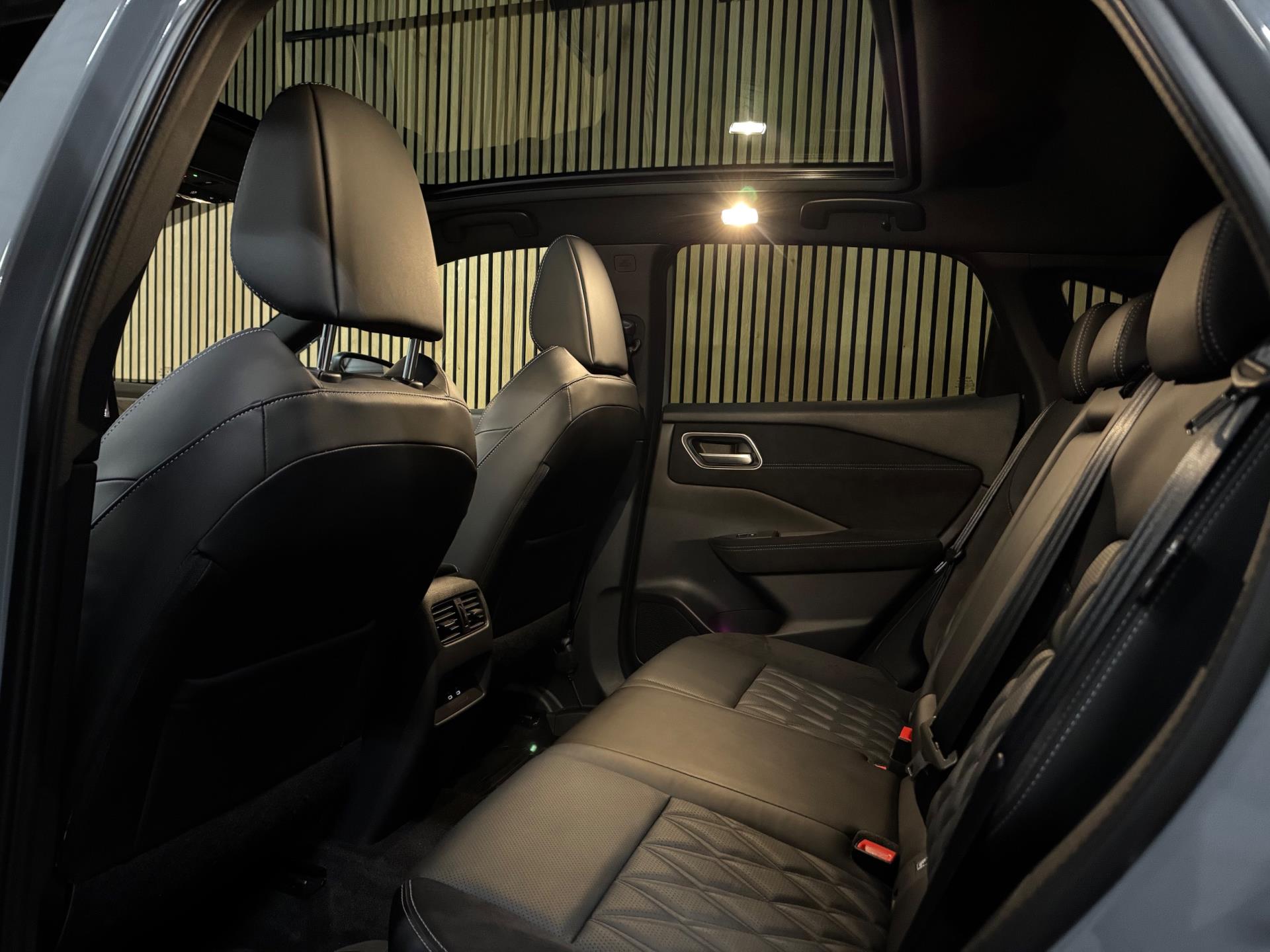 Deze FULL OPTION uitgevoerde Qashqai is voorzien van een panoramisch glazen dak, premium lederen bekleding, elektrisch verstelbare voorstoelen met geheugenfunctie, stoelmassage, stoelverwarming, stuurverwarming en een verwarmde voorruit. Ook aan gebruiksgemak is gedacht met keyless entry & go en een elektrisch (handsfree) bedienbare achterklep.