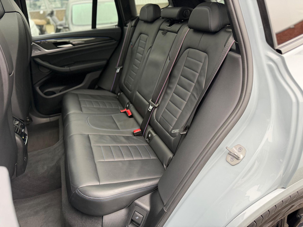 Schitterende BMW X3 30e M-Sport plug-in hybride 292 pk in de kleur Brooklyn Grijs met zwarte accenten, met 96.595 km op de teller, afkomstig van de eerste eigenaar en volledig dealeronderhouden. Deze prachtige auto is uitgevoerd met onder andere panoramadak, head-up display, 360 camera, LED-koplampen, LED-achterlichten, Harman & Kardon surround sound systeem, DAB-radio, Apple CarPlay/Android, multifunctioneel stuurwiel met schakelfunctie, elektrische zetels vóór met memory, lendensteunen verstelbaar, navigatie, virtual cockpit, BMW M 50 jaar embleem, M-Sport stoelen, remsysteem: M Sportremmen (remzadels rood hoogglanzend), performance control, grootlichtassistent, drive recorder, ambient verlichting, stoelverwarming vóór, keyless entry & go, PDC vóór en achter, variabele sportsturing, achterbank verstelbaar, automatische airconditioning 3-zones met automatische luchtcirculatiefunctie, M-aerodynamica pakket, actieve bescherming voor voetgangers, 20 inch lichtmetalen velgen origineel breedset M-Sport, buitenspiegels elektrisch inklapbaar, alle spiegels met dimautomaat, dakreling hoogglans Shadow Line, remassistent (Active Guard), transmissie sport-automaat met Steptronic (8-traps), BMW Live Dashboard Professional, metallic lak, rijassistent-systeem achterbotsing-vermijding (preventie kop-staartbotsing), line assist, stoelbekleding/kussens: leder Vernasca met contraststiksels M, veiligheidsgordels M en warmtewerend glas (achter verduisterd).