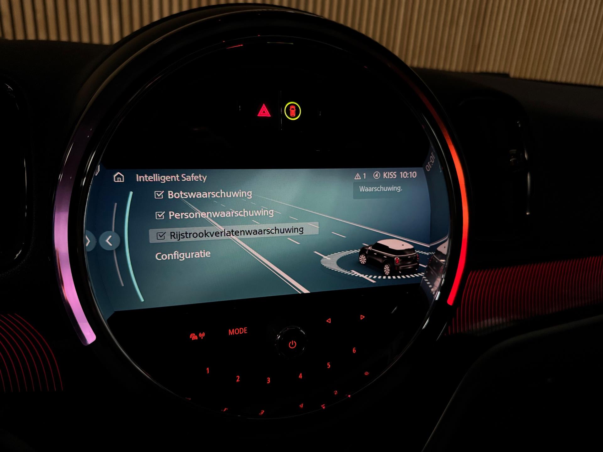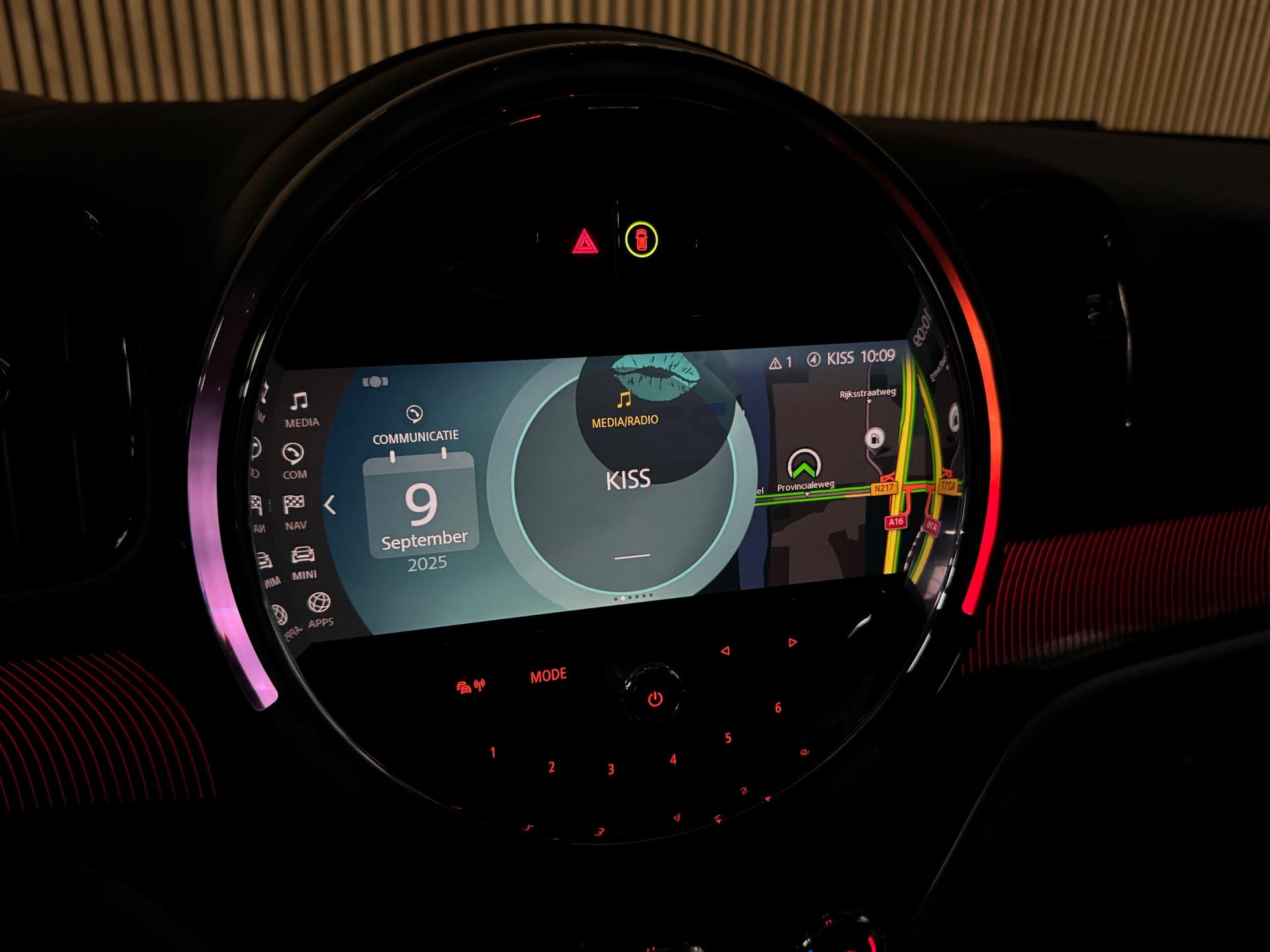 DEZE BLITSENDE MINI COUNTRYMAN YOURS UIT MAART 2023 MET SLECHTS 38.989 KM OP DE TELLER EN 136 PK, EEN SPORTIEVE EYECATCHER IN CHILI RED MET GLANZENDE PIANO BLACK DETAILS, VOORZIEN VAN ONDER ANDERE: