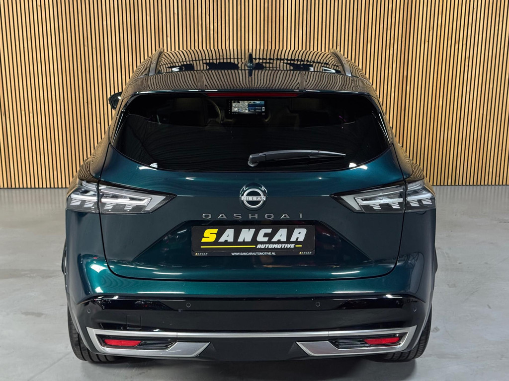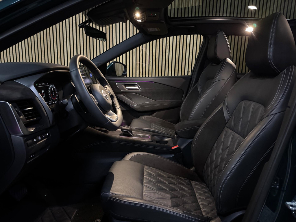 Deze FULL OPTION uitgevoerde Qashqai is voorzien van een panoramisch glazen dak, premium lederen bekleding, elektrisch verstelbare voorstoelen met geheugenfunctie, stoelmassage, stoelverwarming, stuurverwarming en een verwarmde voorruit. Ook aan gebruiksgemak is gedacht met keyless entry & go en een elektrisch (handsfree) bedienbare achterklep.