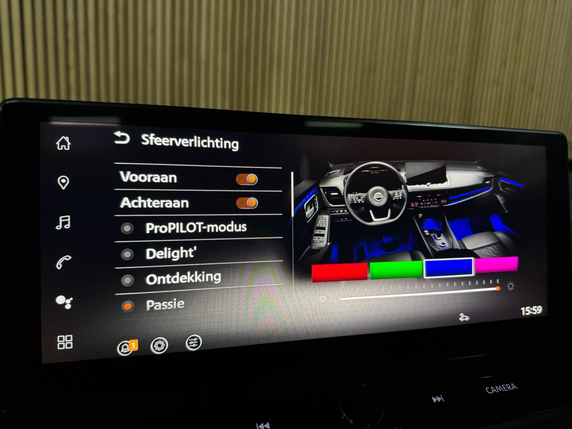 Deze FULL OPTION uitgevoerde Qashqai is voorzien van een panoramisch glazen dak, premium lederen bekleding, elektrisch verstelbare voorstoelen met geheugenfunctie, stoelmassage, stoelverwarming, stuurverwarming en een verwarmde voorruit. Ook aan gebruiksgemak is gedacht met keyless entry & go en een elektrisch (handsfree) bedienbare achterklep.