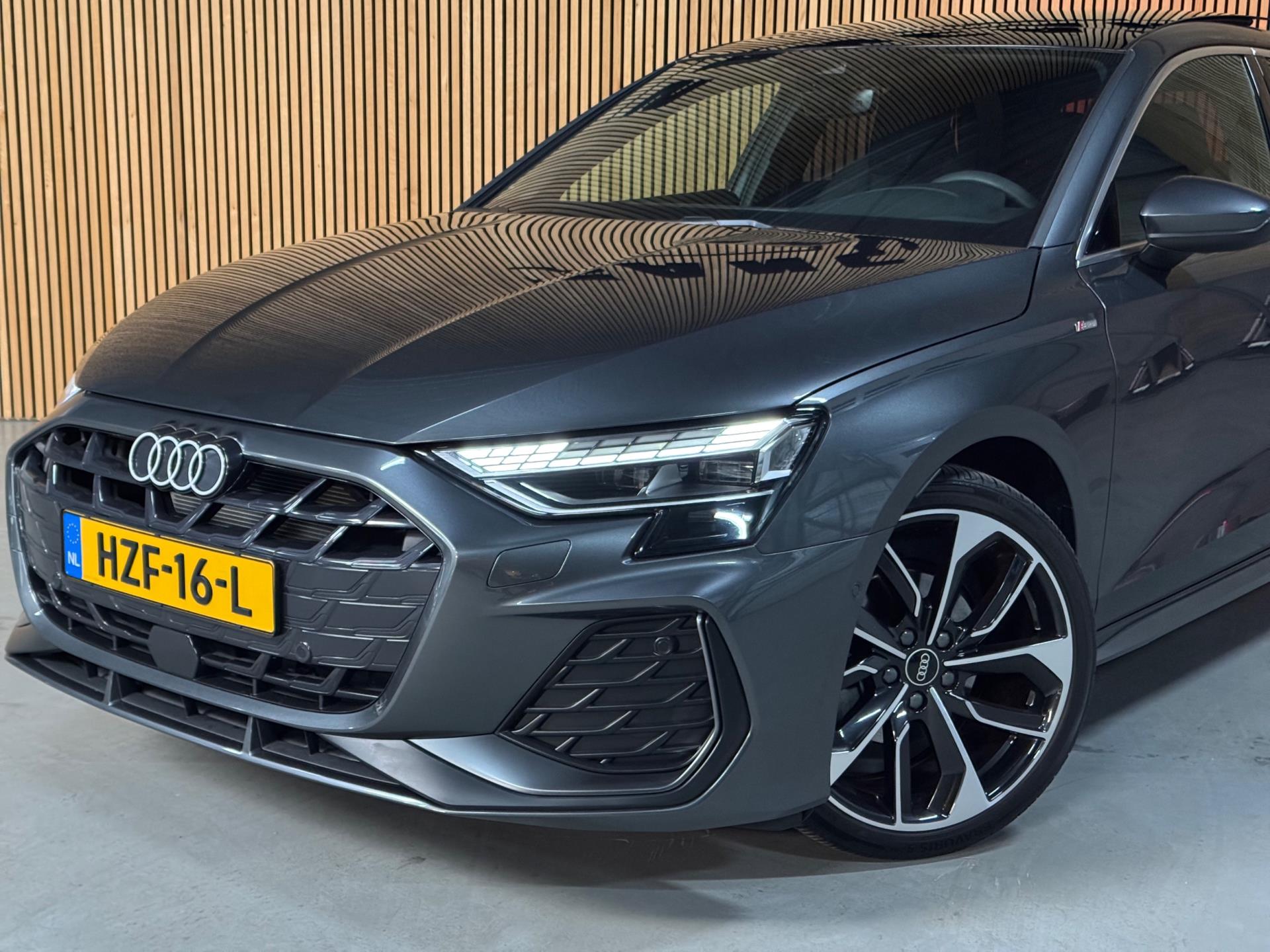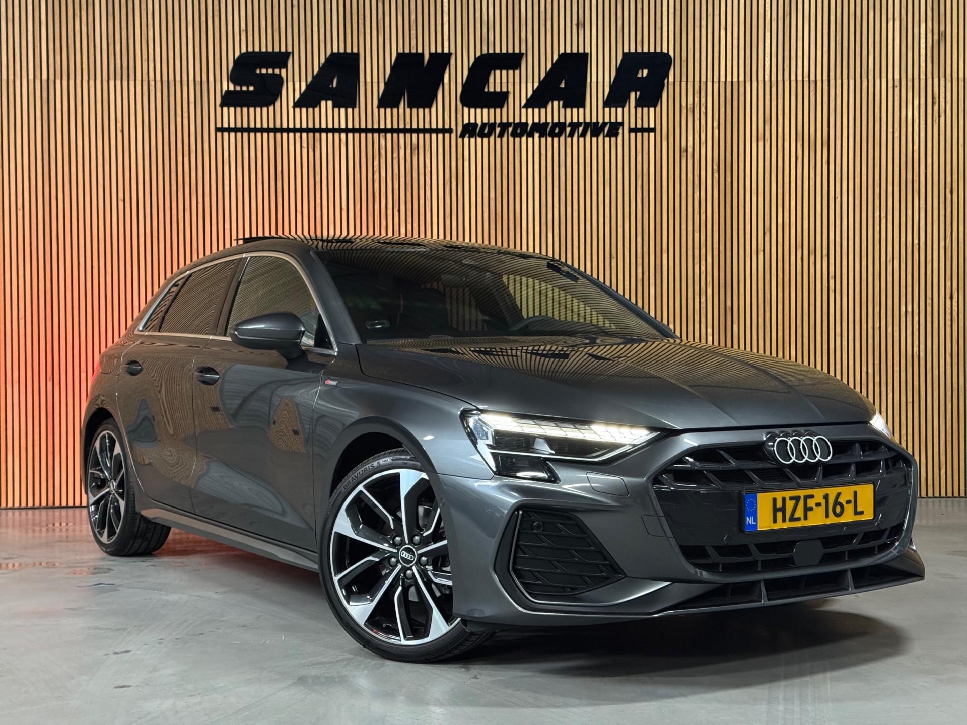 Prachtige Audi A3 3x S-line 35 TFSI uit 2025 in de kleur Daytona grijs pareleffect, met slechts 3.825 km op de teller en in absolute nieuwstaat. De auto heeft nog fabrieksgarantie tot 31 januari 2029.