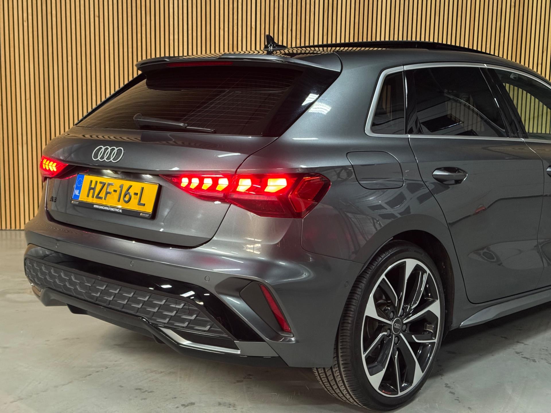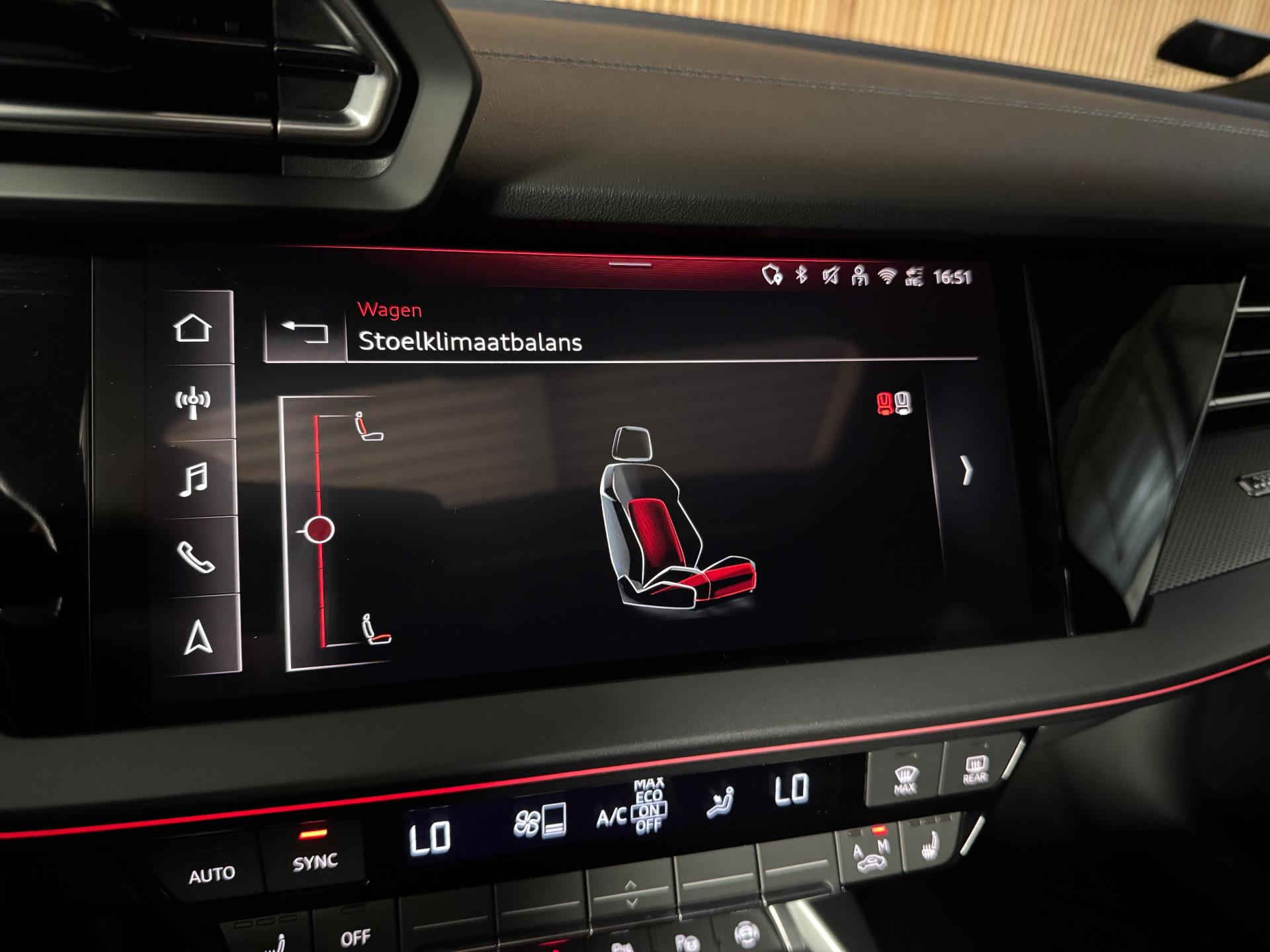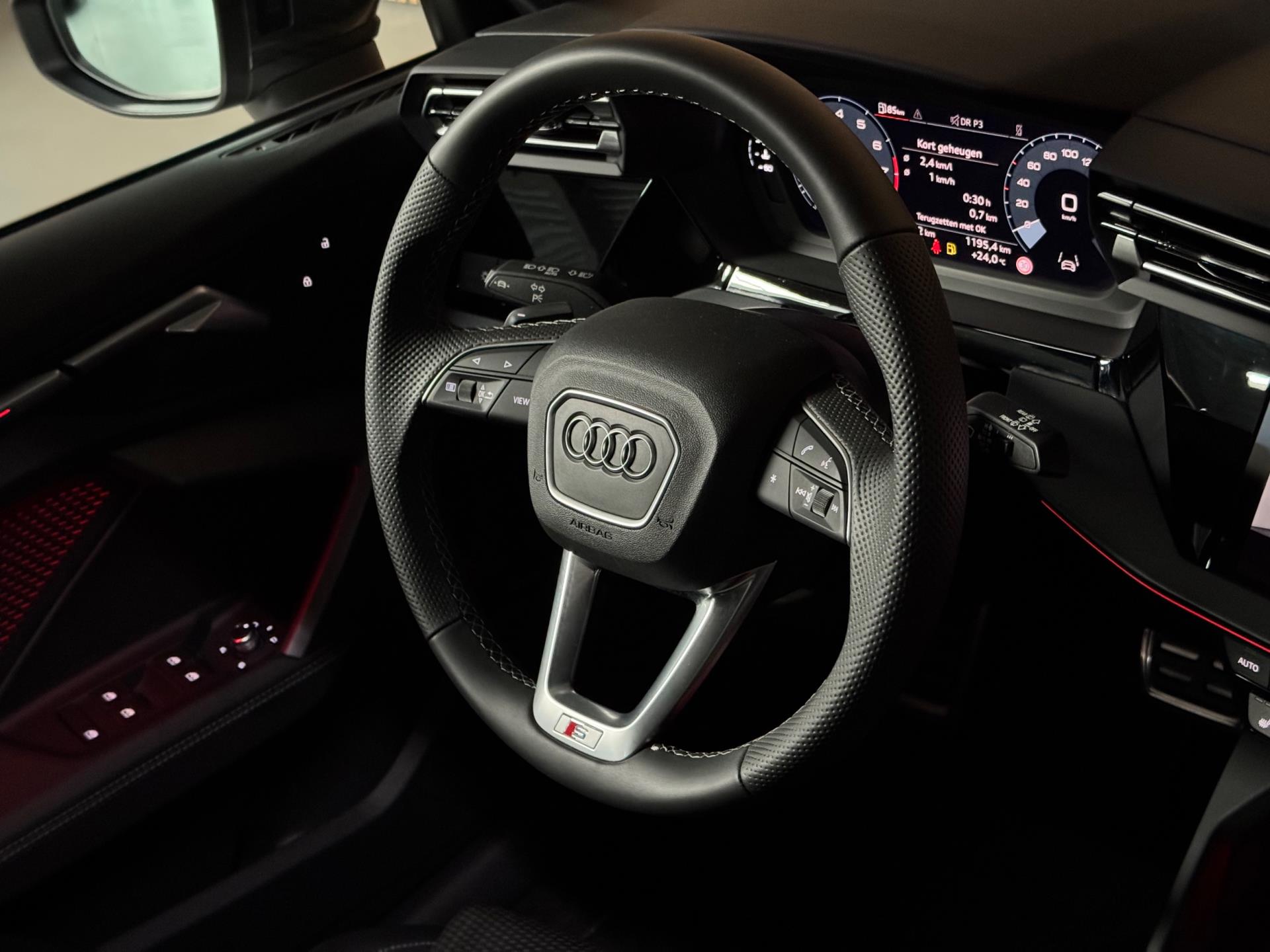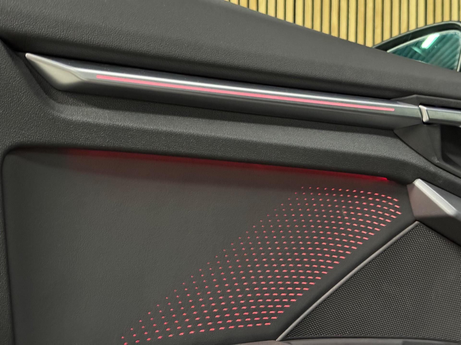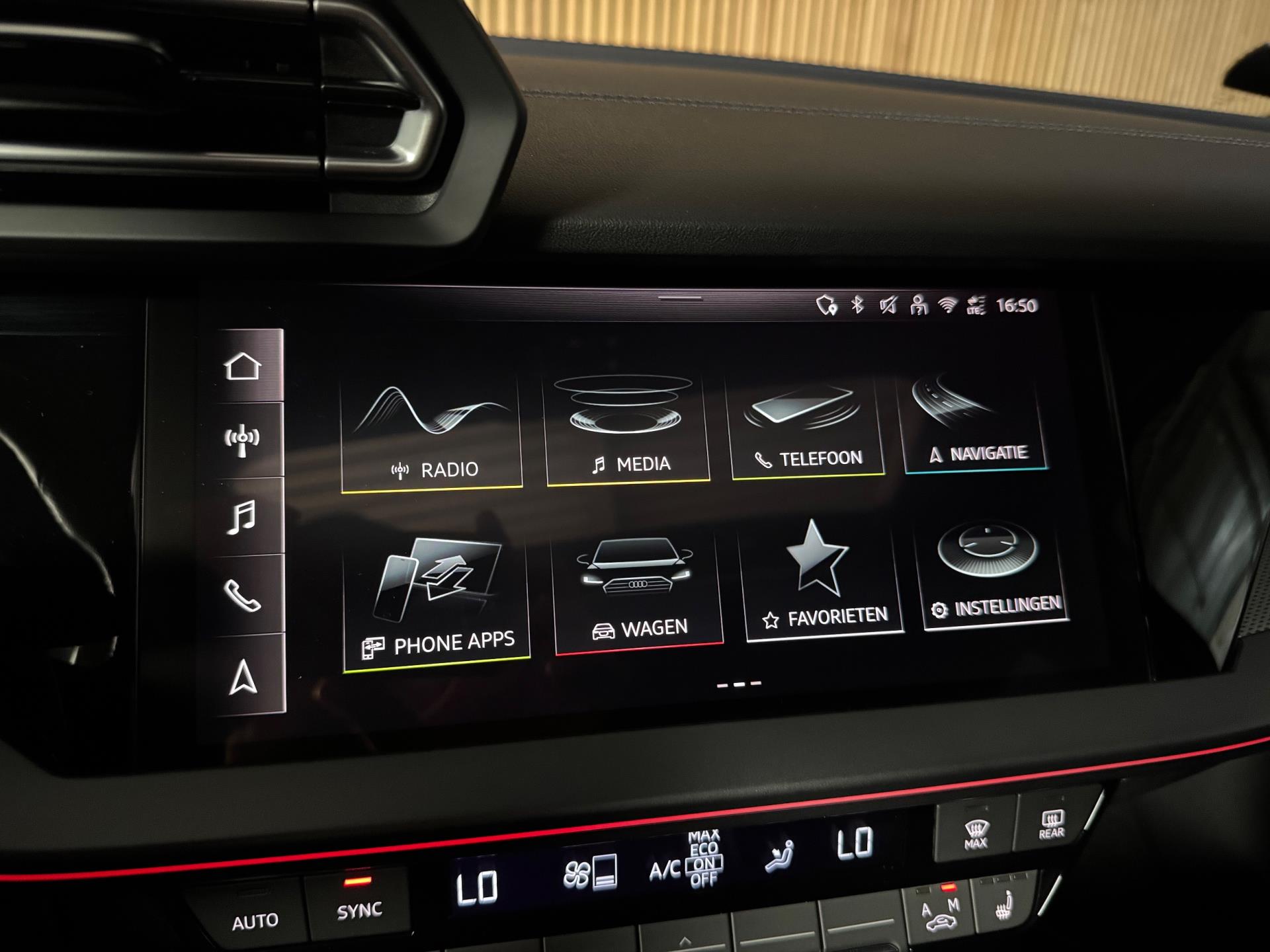Deze zeer rijk uitgeruste Audi A3 is voorzien van een panoramadak, Sonos Premium Soundsysteem, Audi connect, DAB-radio en een USB-interface voor achterbankpassagiers. Het interieur beschikt over ambient sfeerverlichting, sportstoelen met stoelverwarming, elektrisch verstelbare lendensteun, verlichte aluminium instaplijsten met handtekening en donkere Aluminium Spectrum decordelen.