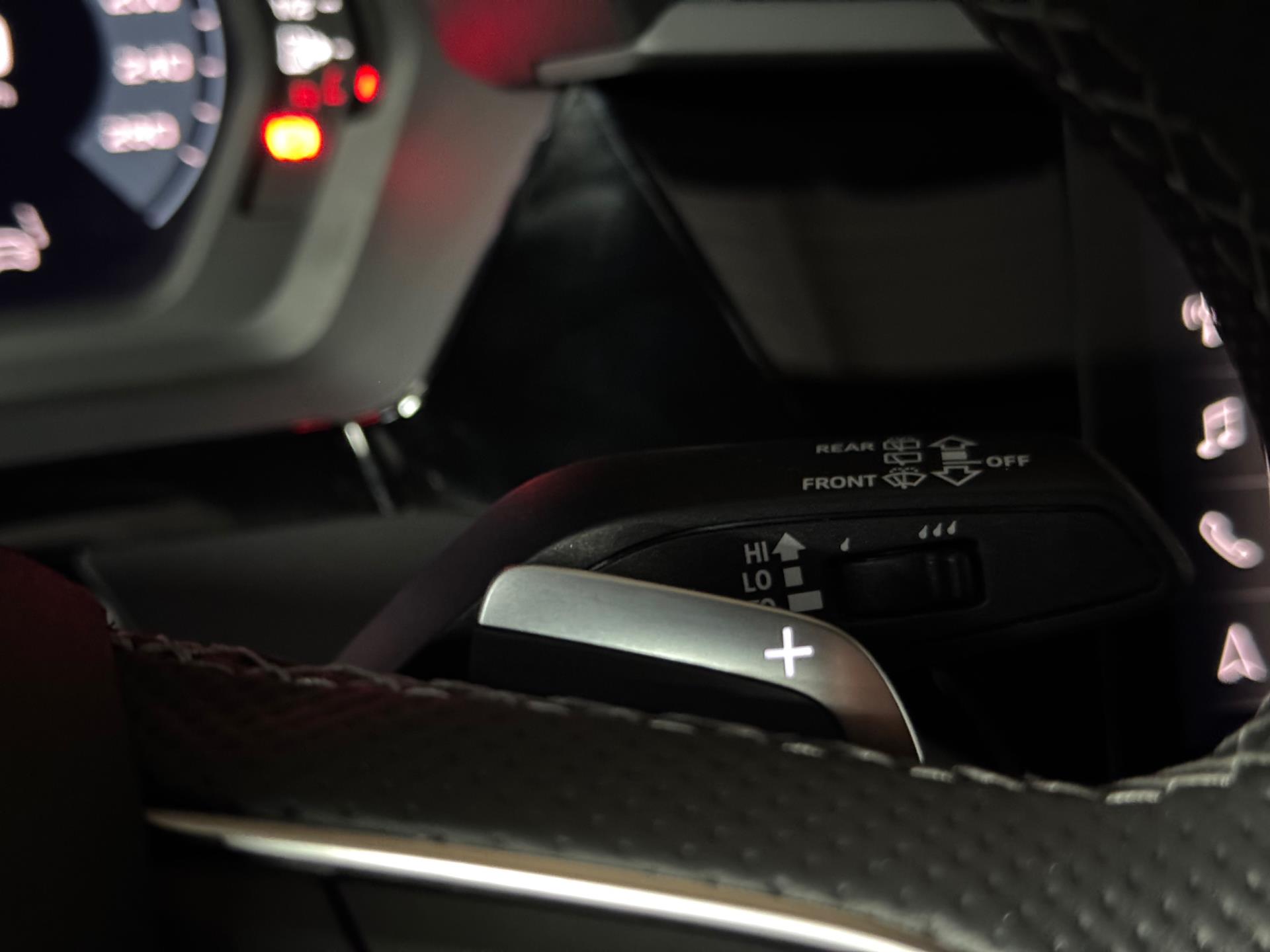 De auto is uitgerust met Keyless Entry & Go, warmtewerend glas, een leren 3-spaaks multifunctioneel sportstuur met schakelflippers, en een binnenspiegel met automatische dimfunctie.