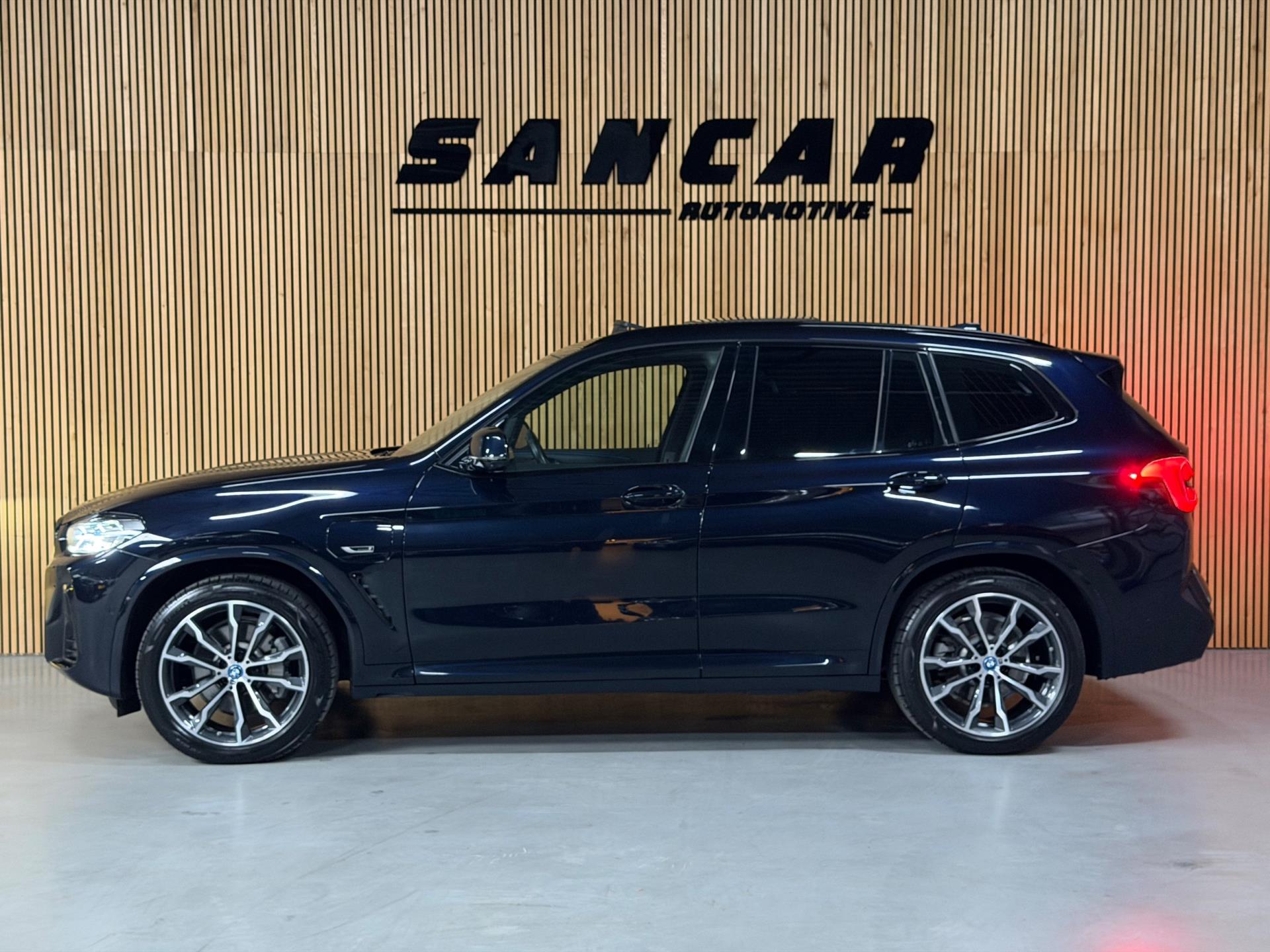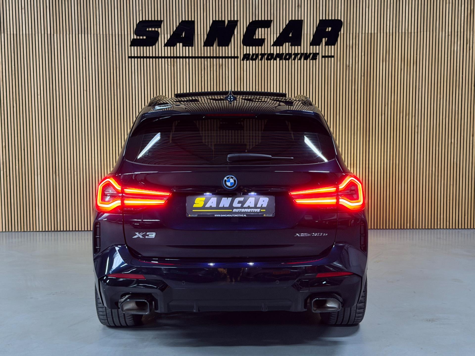 Prachtige BMW X3 30e M Sport Plug-in Hybride met maar liefst 292 pk, uitgevoerd in de stijlvolle kleur Carbon zwart met sportieve zwarte accenten SHADOW LINE. Deze luxe en krachtige SUV heeft slechts 91.400 km op de teller en is voorzien van onder andere: