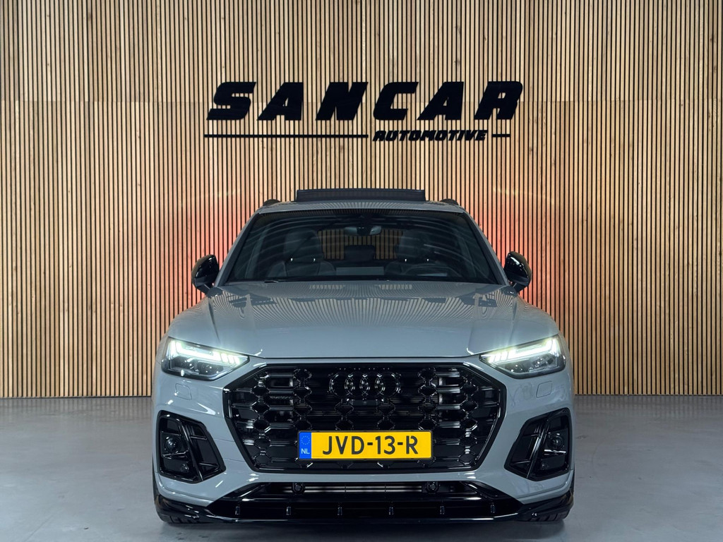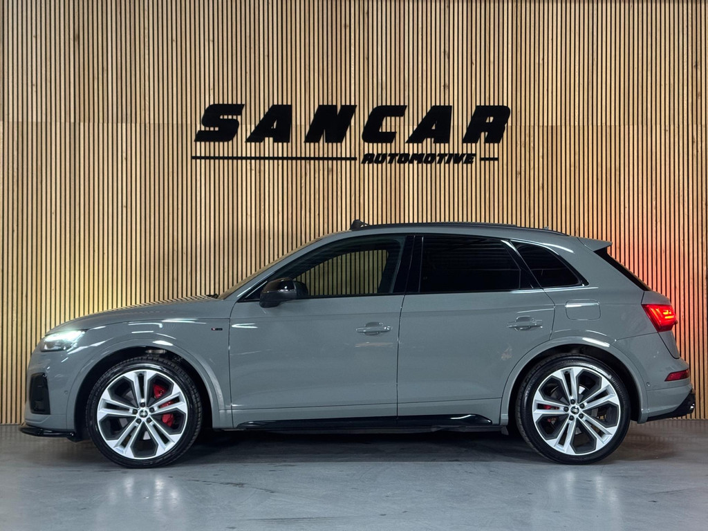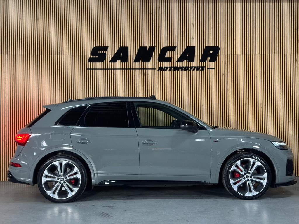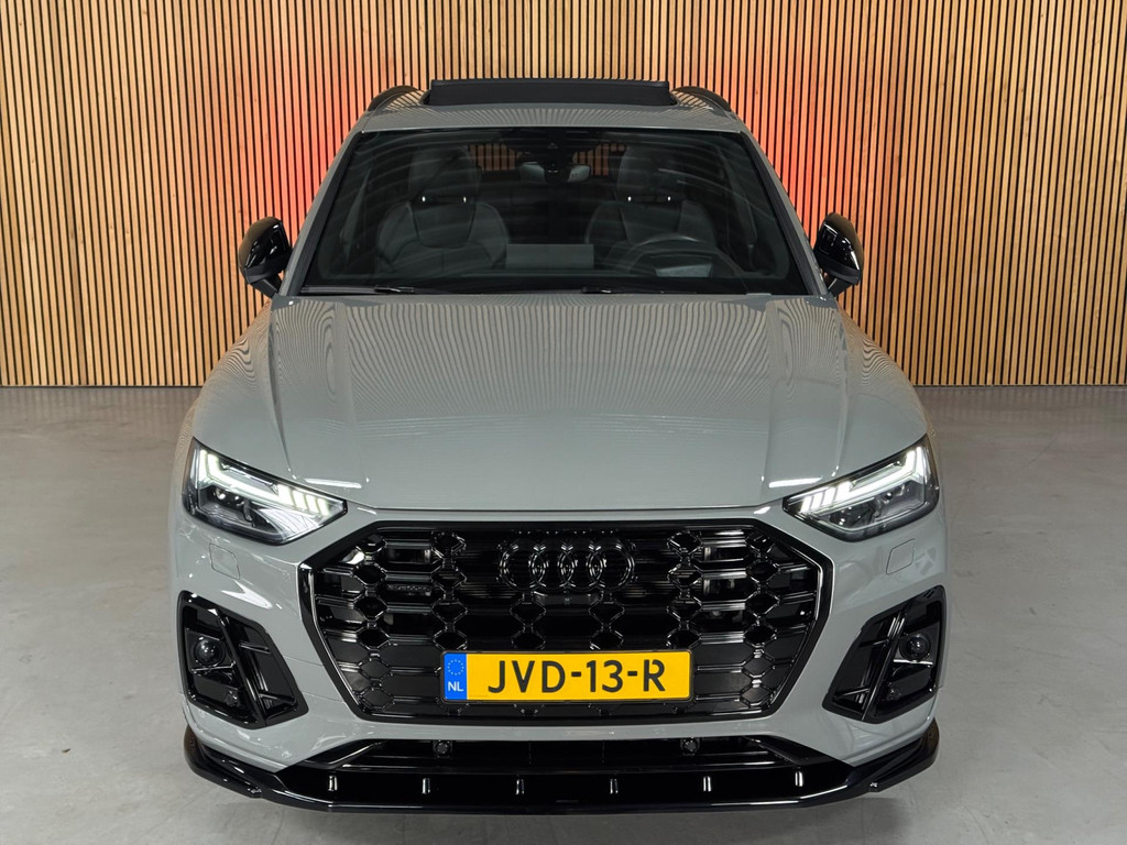 Prachtige Audi Q5 55 TFSI e S-competition S line plug-in hybrid met 367 pk, slechts 42.895 km op de teller, uit februari 2024. Uitgevoerd in de stijlvolle kleur Quantum Grijs met zwarte accenten en 21-inch Audi Sport-velgen. Deze rijk uitgeruste uitvoering beschikt onder andere over een panoramadak, adaptieve luchtvering, elektrisch wegklapbare trekhaak, Bang & Olufsen premium soundsysteem, head-up display, DAB-radio, Apple CarPlay en Android Auto, navigatie, 360° camera, parkeersensoren voor en achter, keyless entry & go, Matrix-LED-koplampen met dynamische lichtintensiteit en OLED-achterlichten. Verder voorzien van een lederen 3-spaaks multifunctioneel sportstuur met schakelfunctie, verlichte instaplijsten met aluminium inzet en handtekening, elektrisch bedienbare achterklep, akoestische voetgangersbescherming (e-sound), verschuifbare en neerklapbare achterbank, 3-zone comfort climate control, Audi Virtual Cockpit, akoestisch glas, ambientverlichting, Audi Connect en Audi Smartphone Interface, privacybeglazing achter, bekerhouders met koel- en verwarmfunctie voor en achter, dodehoekdetectie, elektrisch verstelbare, verwarmbare en inklapbare buitenspiegels met geheugen- en dimfunctie (stoeprandfunctie rechts), adaptive air suspension, alarmsysteem met interieur- en sleepbeveiliging, lane assist, grootlichtassistent, adaptive cruise control, file-assistent, verkeersbordherkenning, hold assist, elektrisch verstelbare stoelen met geheugen en massagefunctie, interieurbekleding in leer/stof Sequenz met logo-afdruk, interieurvoorverwarming (standkachel), zonneschermen voor de achterportieren en zwarte hoogglans en aluminium interieuraccenten.