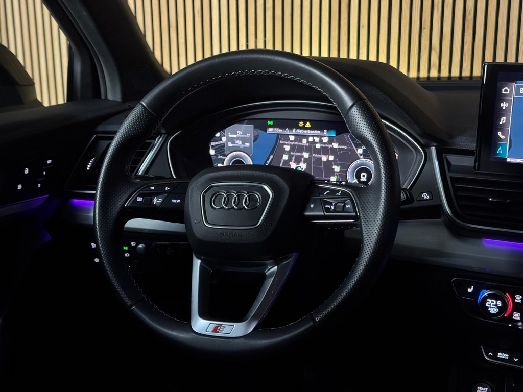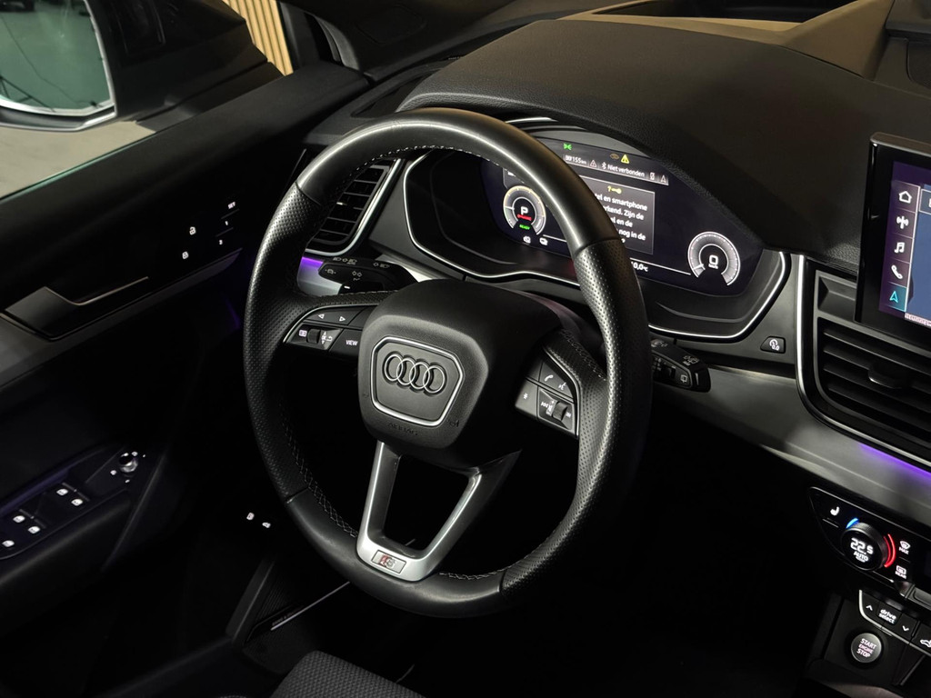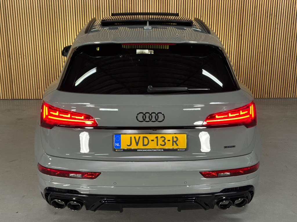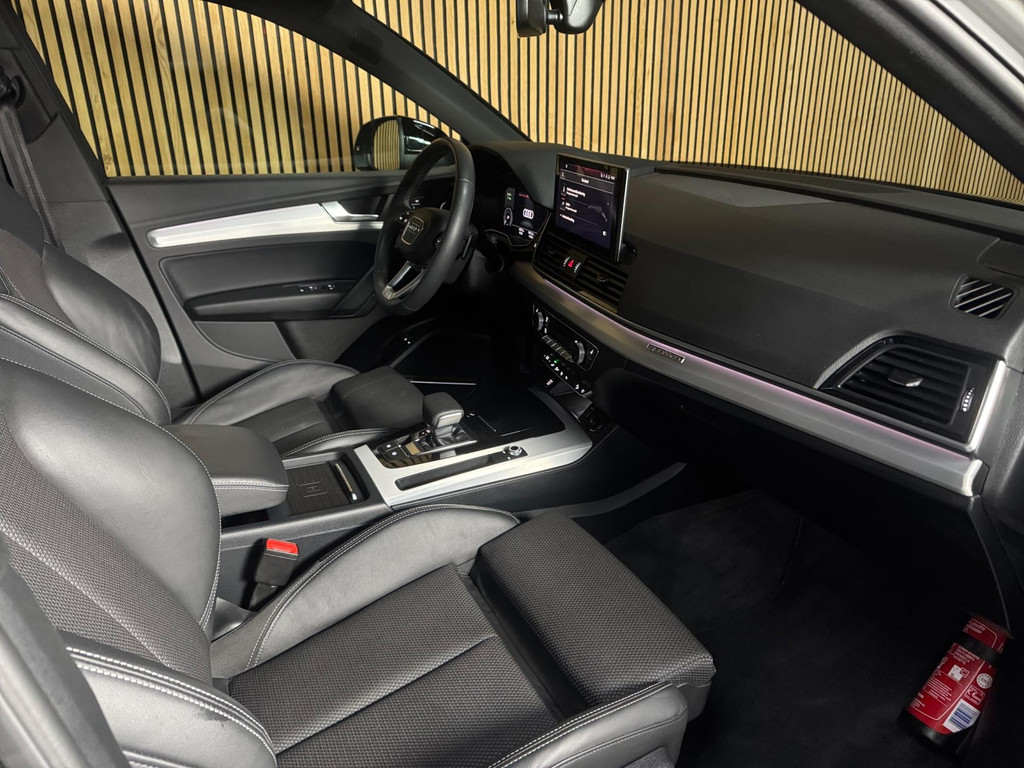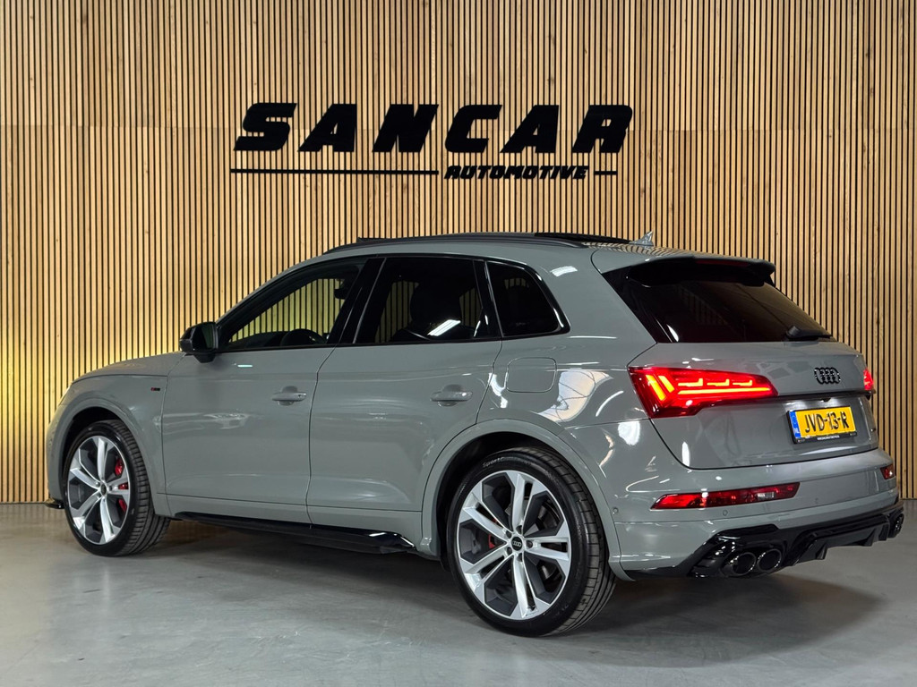 Prachtige Audi Q5 55 TFSI e S-competition S line plug-in hybrid met 367 pk, slechts 42.895 km op de teller, uit februari 2024. Uitgevoerd in de stijlvolle kleur Quantum Grijs met zwarte accenten en 21-inch Audi Sport-velgen. Deze rijk uitgeruste uitvoering beschikt onder andere over een panoramadak, adaptieve luchtvering, elektrisch wegklapbare trekhaak, Bang & Olufsen premium soundsysteem, head-up display, DAB-radio, Apple CarPlay en Android Auto, navigatie, 360° camera, parkeersensoren voor en achter, keyless entry & go, Matrix-LED-koplampen met dynamische lichtintensiteit en OLED-achterlichten. Verder voorzien van een lederen 3-spaaks multifunctioneel sportstuur met schakelfunctie, verlichte instaplijsten met aluminium inzet en handtekening, elektrisch bedienbare achterklep, akoestische voetgangersbescherming (e-sound), verschuifbare en neerklapbare achterbank, 3-zone comfort climate control, Audi Virtual Cockpit, akoestisch glas, ambientverlichting, Audi Connect en Audi Smartphone Interface, privacybeglazing achter, bekerhouders met koel- en verwarmfunctie voor en achter, dodehoekdetectie, elektrisch verstelbare, verwarmbare en inklapbare buitenspiegels met geheugen- en dimfunctie (stoeprandfunctie rechts), adaptive air suspension, alarmsysteem met interieur- en sleepbeveiliging, lane assist, grootlichtassistent, adaptive cruise control, file-assistent, verkeersbordherkenning, hold assist, elektrisch verstelbare stoelen met geheugen en massagefunctie, interieurbekleding in leer/stof Sequenz met logo-afdruk, interieurvoorverwarming (standkachel), zonneschermen voor de achterportieren en zwarte hoogglans en aluminium interieuraccenten.