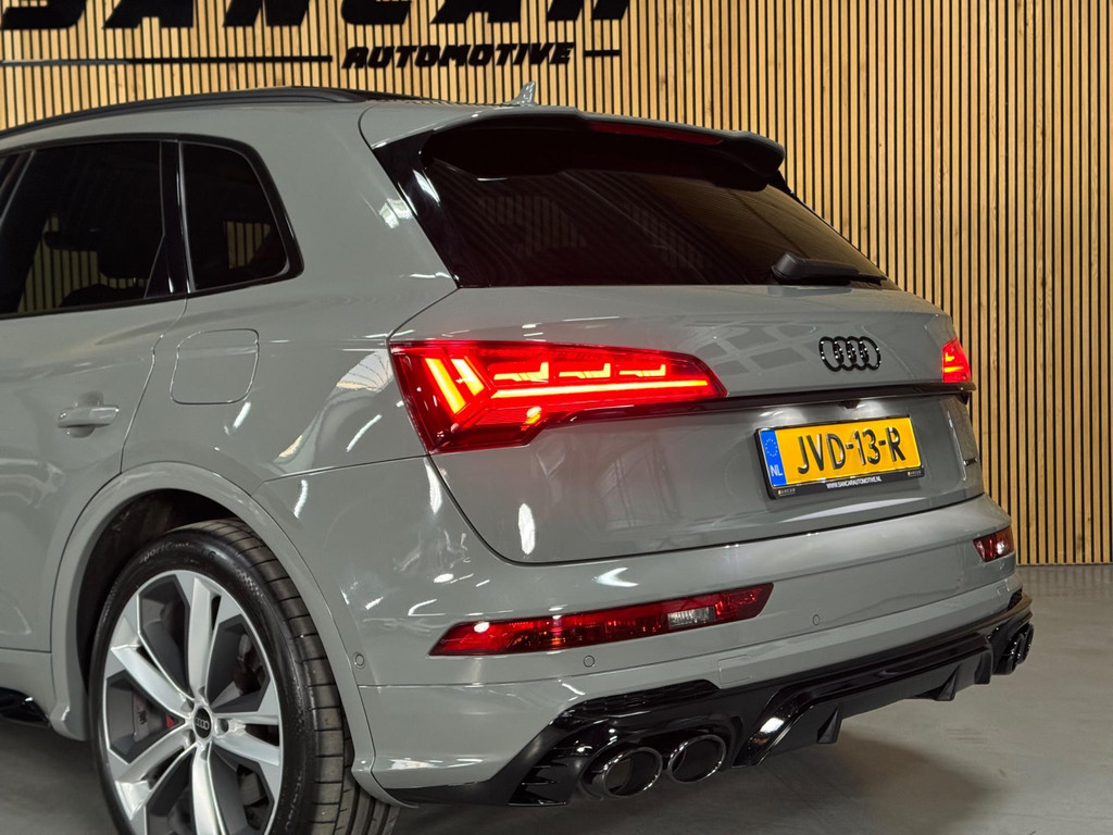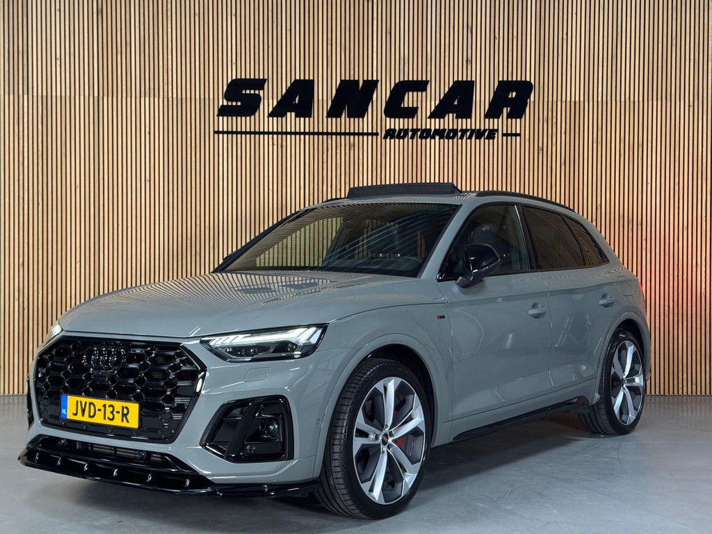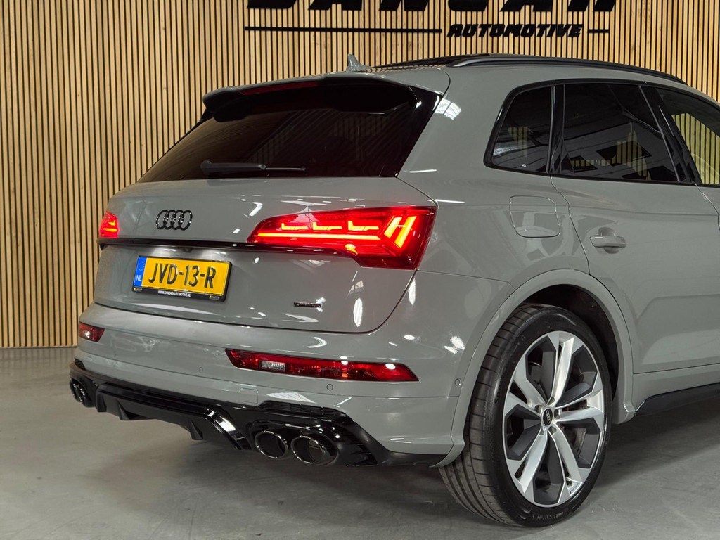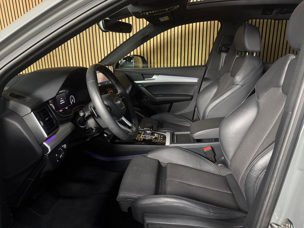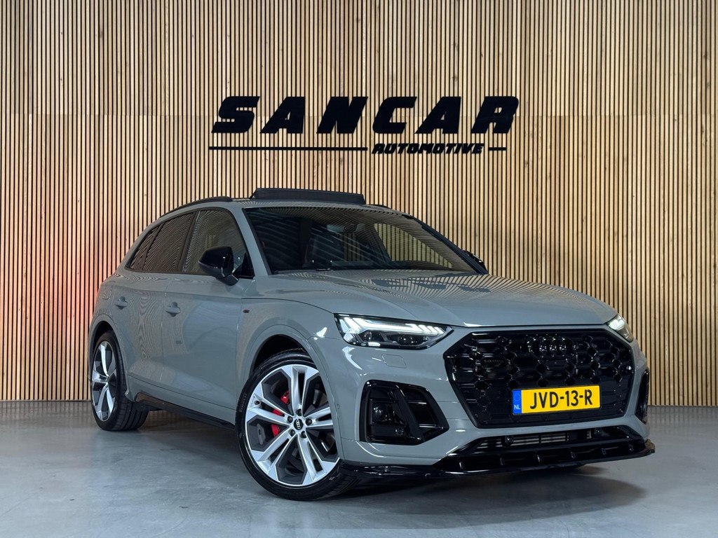 Prachtige Audi Q5 55 TFSI e S-competition S line plug-in hybrid met 367 pk, slechts 42.895 km op de teller, uit februari 2024. Uitgevoerd in de stijlvolle kleur Quantum Grijs met zwarte accenten en 21-inch Audi Sport-velgen. Deze rijk uitgeruste uitvoering beschikt onder andere over een panoramadak, adaptieve luchtvering, elektrisch wegklapbare trekhaak, Bang & Olufsen premium soundsysteem, head-up display, DAB-radio, Apple CarPlay en Android Auto, navigatie, 360° camera, parkeersensoren voor en achter, keyless entry & go, Matrix-LED-koplampen met dynamische lichtintensiteit en OLED-achterlichten. Verder voorzien van een lederen 3-spaaks multifunctioneel sportstuur met schakelfunctie, verlichte instaplijsten met aluminium inzet en handtekening, elektrisch bedienbare achterklep, akoestische voetgangersbescherming (e-sound), verschuifbare en neerklapbare achterbank, 3-zone comfort climate control, Audi Virtual Cockpit, akoestisch glas, ambientverlichting, Audi Connect en Audi Smartphone Interface, privacybeglazing achter, bekerhouders met koel- en verwarmfunctie voor en achter, dodehoekdetectie, elektrisch verstelbare, verwarmbare en inklapbare buitenspiegels met geheugen- en dimfunctie (stoeprandfunctie rechts), adaptive air suspension, alarmsysteem met interieur- en sleepbeveiliging, lane assist, grootlichtassistent, adaptive cruise control, file-assistent, verkeersbordherkenning, hold assist, elektrisch verstelbare stoelen met geheugen en massagefunctie, interieurbekleding in leer/stof Sequenz met logo-afdruk, interieurvoorverwarming (standkachel), zonneschermen voor de achterportieren en zwarte hoogglans en aluminium interieuraccenten.