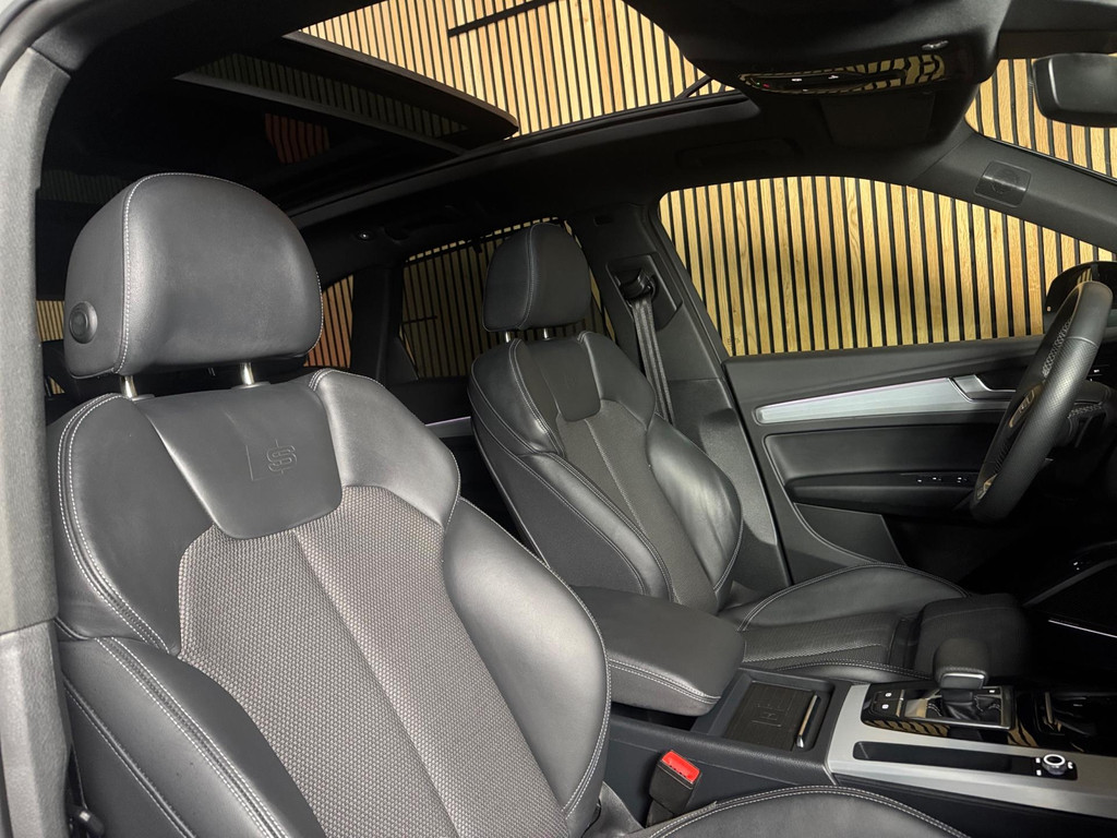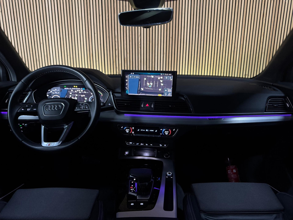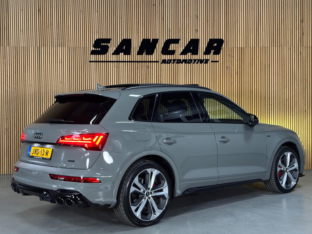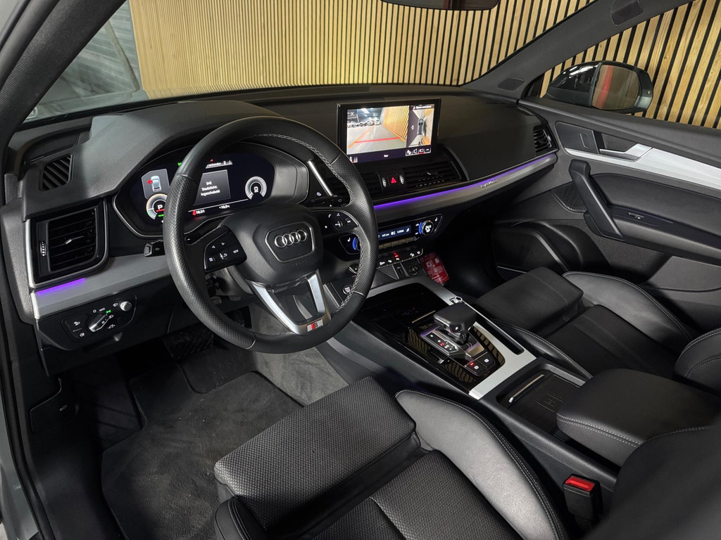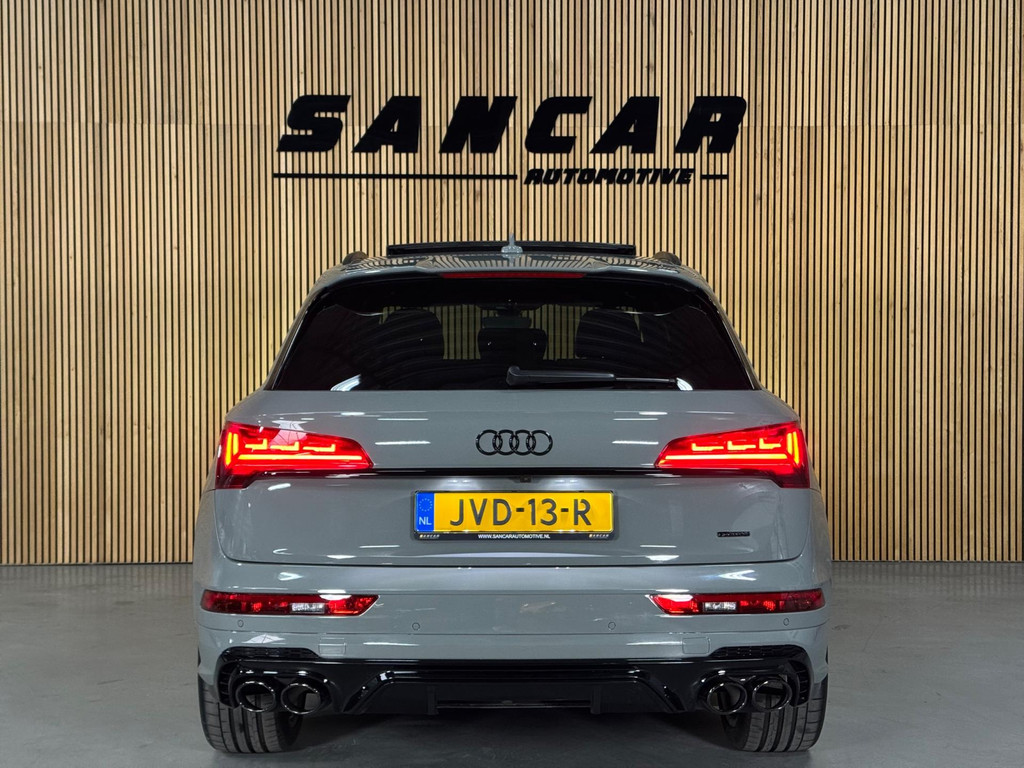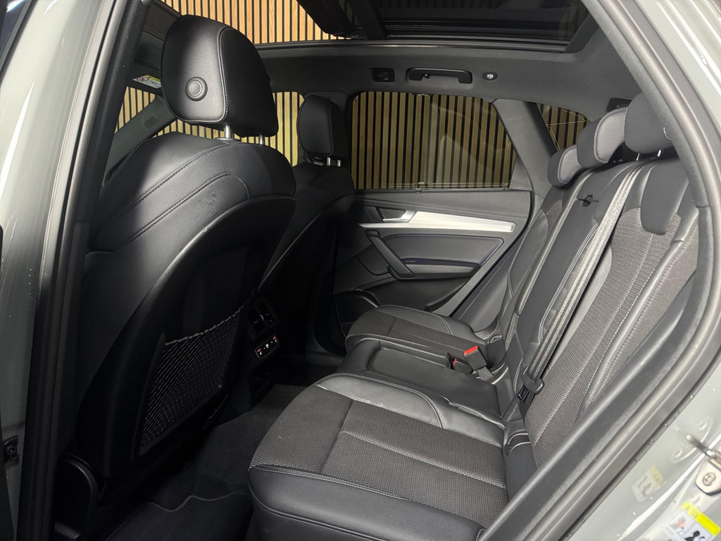 Prachtige Audi Q5 55 TFSI e S-competition S line plug-in hybrid met 367 pk, slechts 42.895 km op de teller, uit februari 2024. Uitgevoerd in de stijlvolle kleur Quantum Grijs met zwarte accenten en 21-inch Audi Sport-velgen. Deze rijk uitgeruste uitvoering beschikt onder andere over een panoramadak, adaptieve luchtvering, elektrisch wegklapbare trekhaak, Bang & Olufsen premium soundsysteem, head-up display, DAB-radio, Apple CarPlay en Android Auto, navigatie, 360° camera, parkeersensoren voor en achter, keyless entry & go, Matrix-LED-koplampen met dynamische lichtintensiteit en OLED-achterlichten. Verder voorzien van een lederen 3-spaaks multifunctioneel sportstuur met schakelfunctie, verlichte instaplijsten met aluminium inzet en handtekening, elektrisch bedienbare achterklep, akoestische voetgangersbescherming (e-sound), verschuifbare en neerklapbare achterbank, 3-zone comfort climate control, Audi Virtual Cockpit, akoestisch glas, ambientverlichting, Audi Connect en Audi Smartphone Interface, privacybeglazing achter, bekerhouders met koel- en verwarmfunctie voor en achter, dodehoekdetectie, elektrisch verstelbare, verwarmbare en inklapbare buitenspiegels met geheugen- en dimfunctie (stoeprandfunctie rechts), adaptive air suspension, alarmsysteem met interieur- en sleepbeveiliging, lane assist, grootlichtassistent, adaptive cruise control, file-assistent, verkeersbordherkenning, hold assist, elektrisch verstelbare stoelen met geheugen en massagefunctie, interieurbekleding in leer/stof Sequenz met logo-afdruk, interieurvoorverwarming (standkachel), zonneschermen voor de achterportieren en zwarte hoogglans en aluminium interieuraccenten.