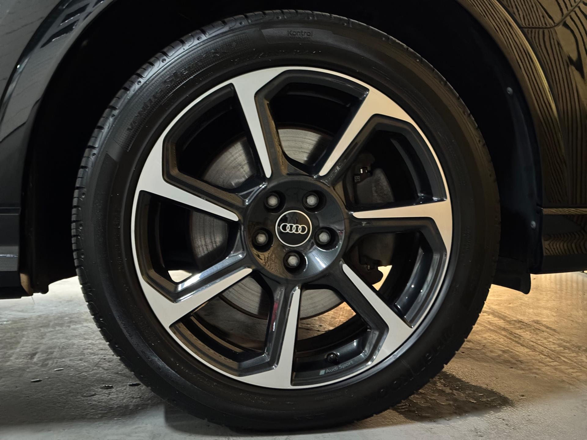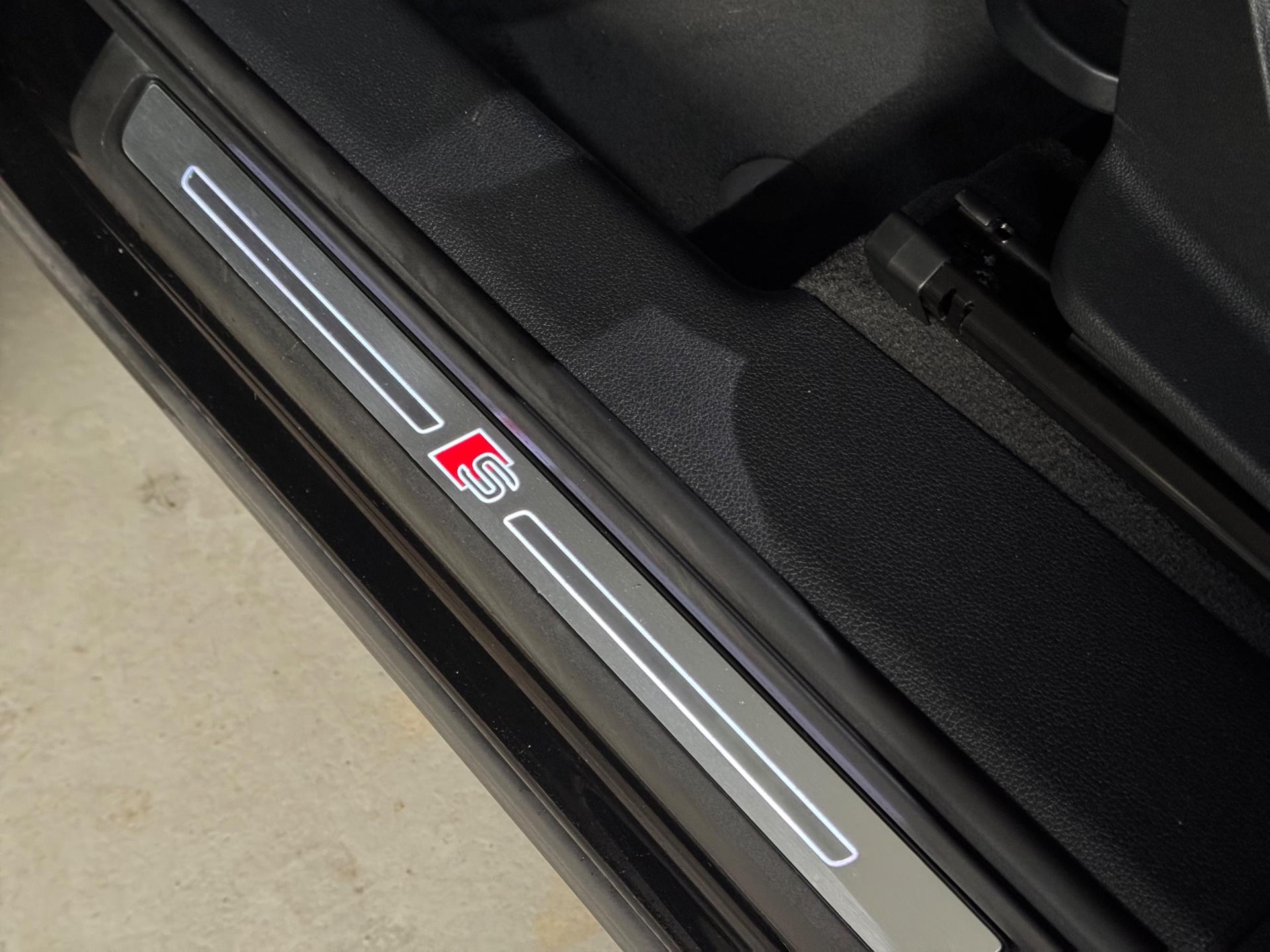 Verder is de auto uitgerust met sportstoelen, stoelverwarming voor, een sportief multifunctioneel lederen 3-spaaks stuurwiel met schakelfunctie en afgeplatte onderzijde, Sound-systeem DSP / Audi Sound System, Advanced Key (comfortsleutel), elektrisch bedienbare achterklep, licht- en regensensor, binnenspiegel en buitenspiegels met automatisch dimmende functie, elektrisch verstelbare, verwarmbare en inklapbare buitenspiegels met stoeprandfunctie, akoestisch en warmtewerend glas, ambientverlichting, verlichte aluminium instaplijsten, achterbank in delen neerklapbaar, verschuifbaar en voorzien van middenarmsteun, Optiek-pakket Zwart Plus, metallic lak en 19 inch lichtmetalen velgen in 7-spaaks Rotor-design (antracietzwart glansgedraaid).