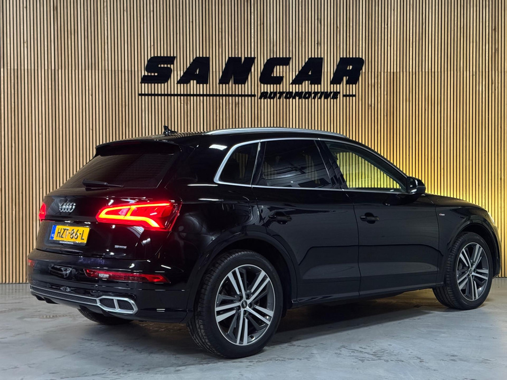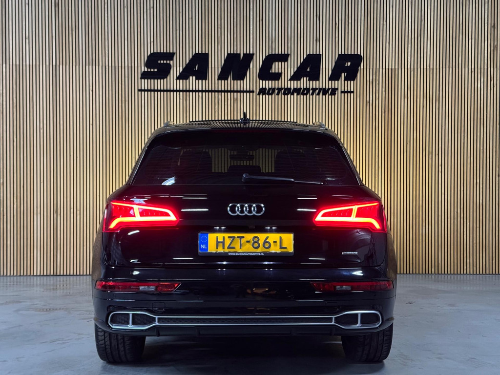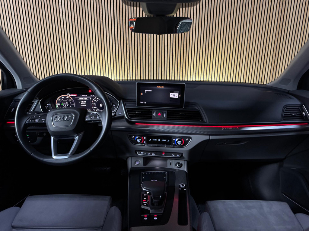 Nette, goed onderhouden Audi Q5 55 TFSI e Competition S-line plug-in hybride met 367 pk, afkomstig van de 1e eigenaar met maar liefst 148.xxx km op de teller. Deze prachtige auto is rijk uitgerust met onder andere een panoramadak, adaptieve luchtvering, premium Bang & Olufsen soundsysteem, Matrix-LED koplampen met bocht- en all-weatherverlichting, koplampsproeiers, automatische koplamphoogteregeling en fraaie LED achterlichten met dynamisch knipperlicht. Daarnaast beschikt de auto over het Glans-pakket, 20” lichtmetalen velgen, luxe 3-zone automatische airconditioning, sportstoelen voor, hoogwaardige Alcantara/leren bekleding, elektrisch verstelbare voorstoelen met geheugenfunctie, stoelverwarming voor en achter, pneumatisch verstelbare lendensteun met massagefunctie, interieurvoorverwarming, aluminium Tangente interieurdecor, luxe interieurelementen in (kunst)leer, verlichte instaplijsten, akoestisch glas en sfeervolle multicolor ambienteverlichting. Verder is de auto voorzien van een elektrisch bedienbare achterklep, comfort-sleutel met handsfree bediening, elektrisch verstelbare, verwarmbare en inklapbare buitenspiegels met dimfunctie en memory, stoeprandfunctie rechts, automatisch dimmende binnenspiegel, dubbele verschuifbare zonnekleppen en elektronische wegrijblokkering. Op technologisch gebied beschikt de Q5 over Virtual Cockpit, MMI Navigation Plus met MMI Touch, Audi connect, Audi Smartphone Interface (Apple CarPlay/Android Auto), een kleurendisplay bestuurdersinformatiesysteem, achteruitrijcamera, frontcamera en parkeersensoren voor en achter. Veiligheid en assistentie worden ondersteund door cruise control, lane assist met Emergency Assist, verkeersbordenherkenning, grootlichtassistent, Side Assist inclusief Audi pre sense rear, hold assist, voetgangersbescherming en een verwarmbare voorruit. Tot slot is de auto uitgevoerd met sportieve rode remklauwen en zowel het Audi Design Selection- als het Technology Selection-pakket.