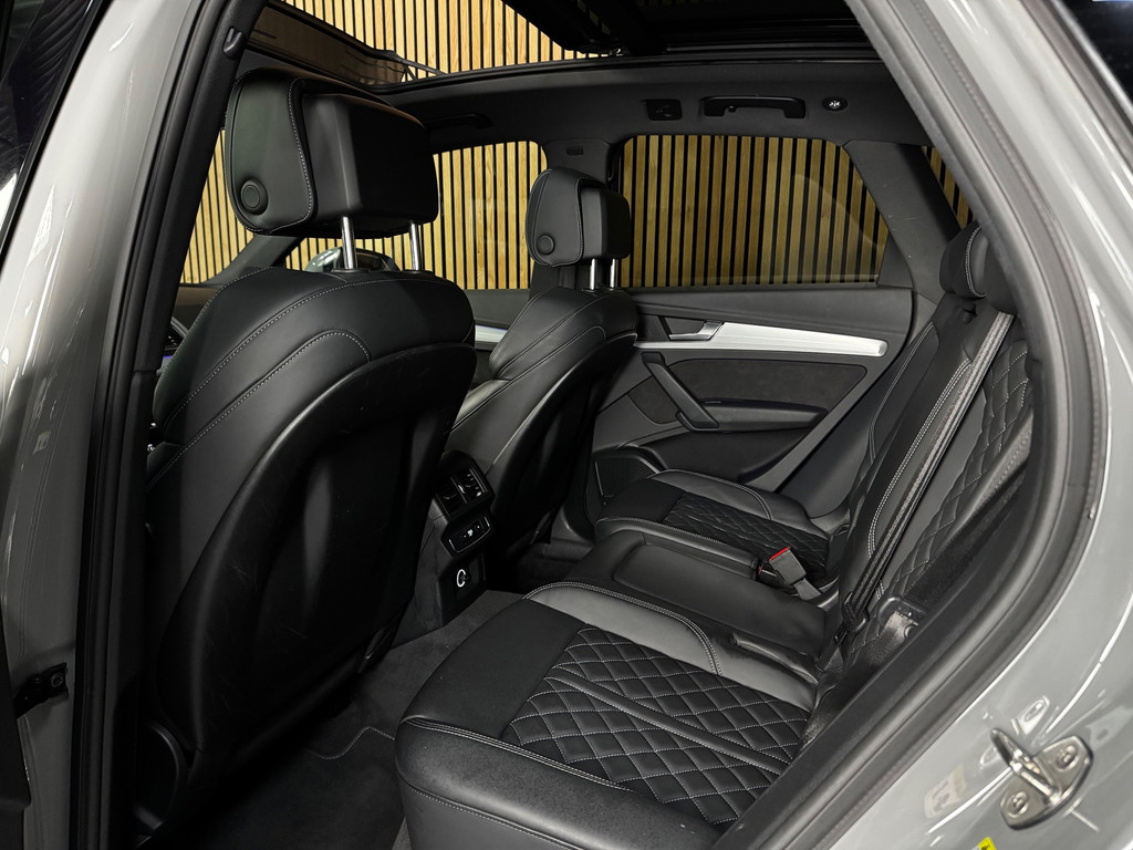 Deze zeer rijk uitgeruste uitvoering beschikt onder andere over een panoramadak, luchtvering, trekhaak, Bang & Olufsen audiosysteem, fijnnappa lederen sportstoelen met ruitenstiksel en S-logo’s, elektrisch verstelbare voorstoelen (links met memory), elektrisch verstelbare lendensteunen vóór, stoelverwarming vóór, multicolor LED-ambienteverlichting, een sportstuurwiel in leder (3-spaaks, afgeplat aan de onderzijde) met Multifunctie Plus, Virtual Cockpit, Audi Drive Select, interieurafwerking Aluminium Mat en verlichte instaplijsten met aluminium inzetstuk en handtekening.