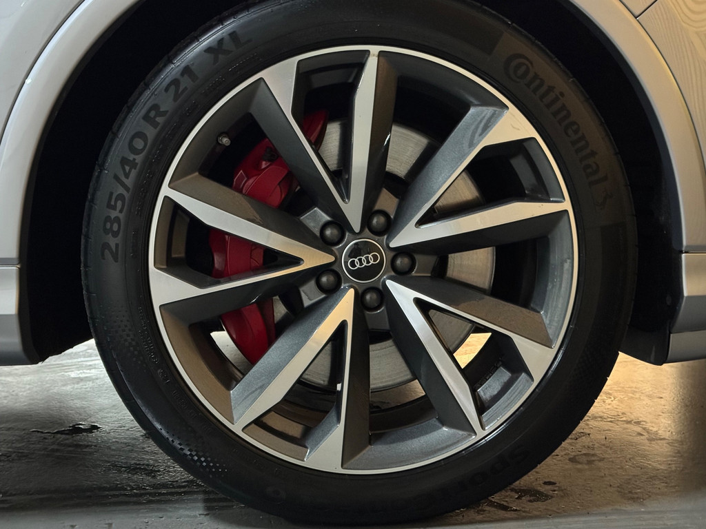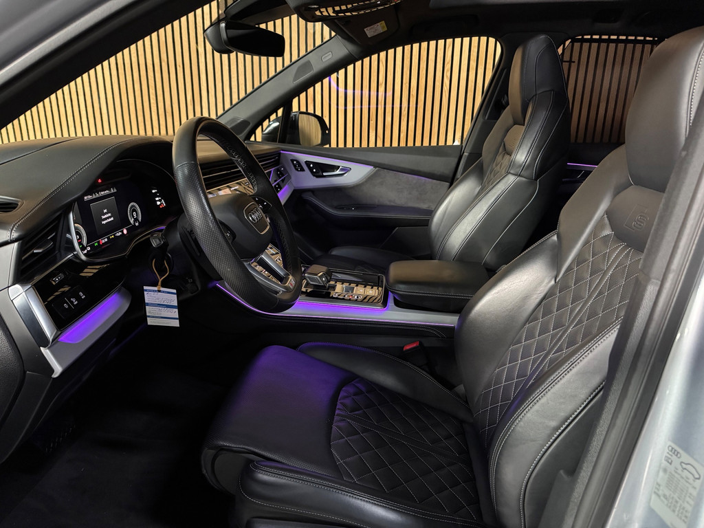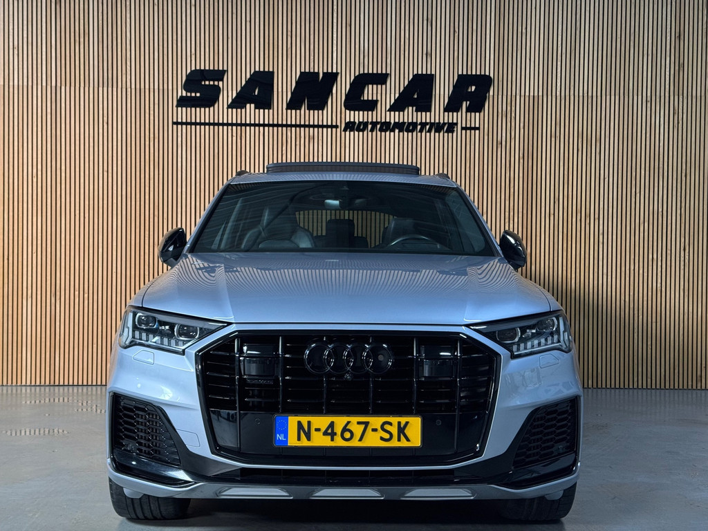 Prachtige Audi Q7 S-Line Competition van februari 2021, uitgevoerd in het elegante Florett Silver Metallic met zwarte accenten. De wagen heeft 128.xxx km op de teller, is volledig onderhouden en kreeg recent nog een grote onderhoudsbeurt.