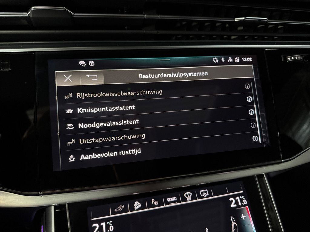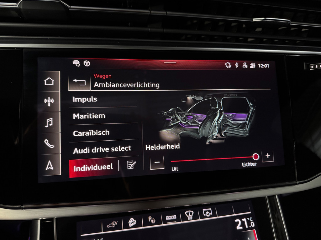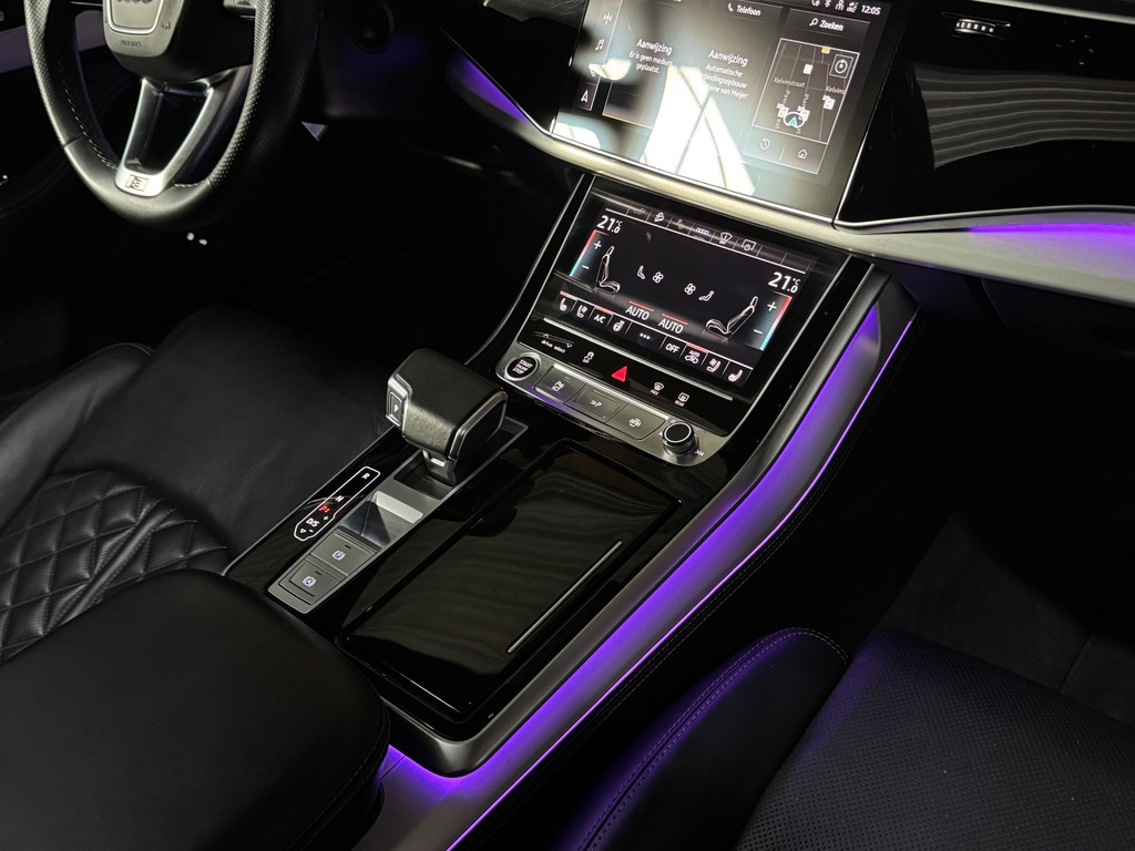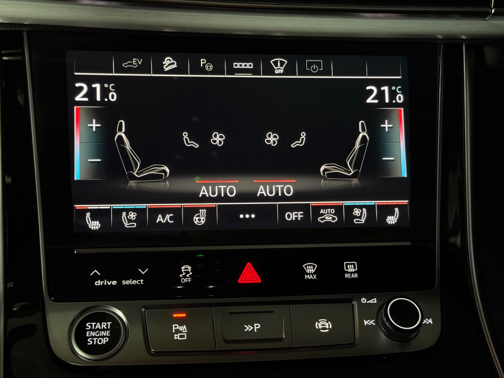 Deze schitterende uitvoering is onder andere voorzien van: panoramadak, luchtvering, trekhaak, Bang & Olufsen Premium 3D, ambienteverlichtingspakket Plus, head-up display, 360° camera, Matrix-LED-koplampen met laserverlichting, LED-achterlichten (per) met dynamische lichtanimatie en dynamisch knipperlicht, koplampsproeiers, S sportstoelen Plus, voorstoelen elektrisch verstelbaar met memoryfunctie, elektrisch verstelbare lendensteunen vóór, Valcona leder met ruitstiksel, stoelventilatie en massagefunctie vóór, stoelverwarming vóór en achter, binnenspiegel met dimautomaat, bedieningselementen in glasoptiek incl. uitgebreide aluminium-look, Virtual Cockpit, LED-instaplampen met projectiefunctie, verlichte instaplijsten met aluminiuminzetstuk en handtekening, Multimedia-interface MMI Navigation Plus met MMI Touch, digitale radio-ontvangst DAB, Audi Pre Sense Front, Hold Assist, verkeersbordenherkenning, rijassistent-systeem snelheidslimietindicator, frontcamera, elektronische wegrijblokkering, achterbank (2e zitrij) verschuifbaar Plus, adaptieve en verwarmde ruitenwissers, Audi Music Interface op de achterbank, Audi Smartphone Interface (Apple CarPlay/Android Auto), elektrisch bedienbare bagage-/laadruimteafdekking, privacybeglazing achter, Bluetooth-handsfree-installatie met spraakherkenning, buitenspiegels elektrisch verstelbaar, verwarmbaar en inklapbaar met dimautomaat en memory, buitenspiegel met stoeprandfunctie, keyless entry en keyless go, diefstalalarmsysteem met interieur- en sleepbeveiliging, dubbele zonnekleppen (verschuifbaar en uittrekbaar), interieurinrichting met lederen interieurelementen, interieurvoorverwarming, ionisator voor luchtreiniging (Air Quality-systeem), lichtmetalen velgen 9,5x21 (5-dubbelspaaks V-design, contrastgrijs, gedeeltelijk gepolijst), Optiekpakket Zwart Plus, Adaptive Rijassistent, kruisingassistent, nachtzichtassistent, parkeerstuurassistent, softclose portieren, sperdifferentieel, verwarmbaar multifunctioneel lederen 3-spaaks stuurwiel Plus, elektrisch verstelbare stuurkolom, voetgangersbeschermingssysteem, zonnescherm voor achterruit en zijruiten.